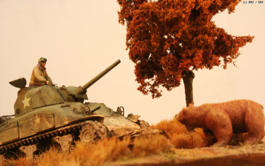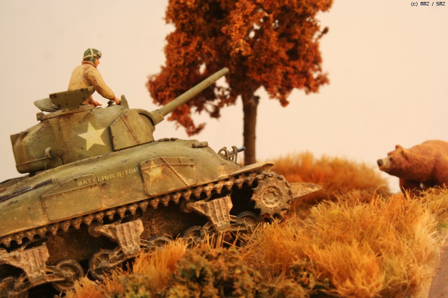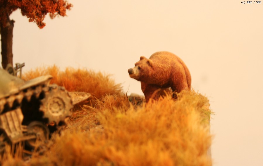 지나가던 곰과 전차병이 멈춰서서 서로를 보는 장면입니다.(싸우는거 아닙니다.;;)