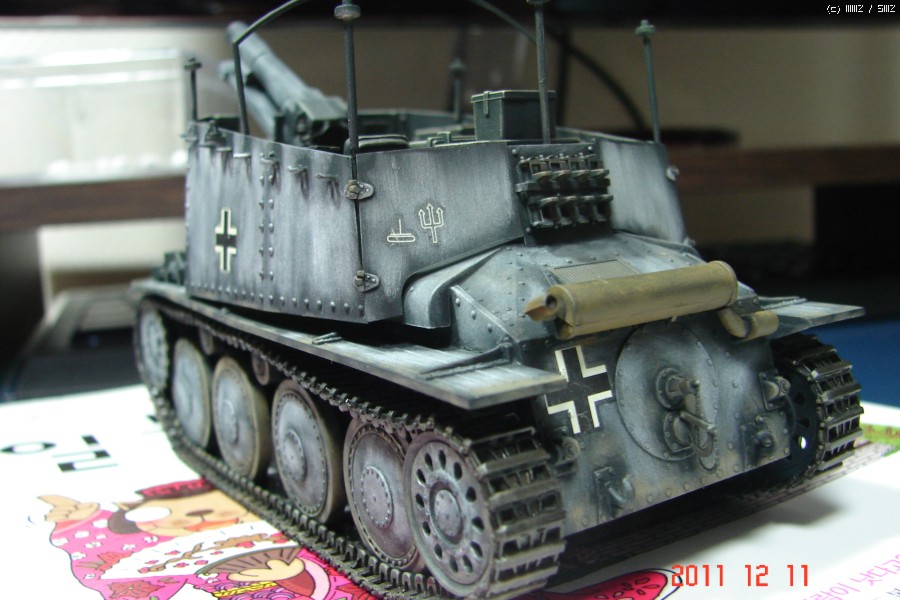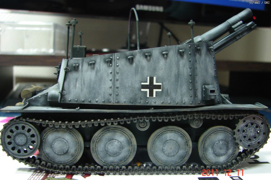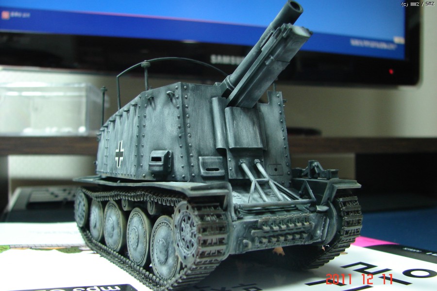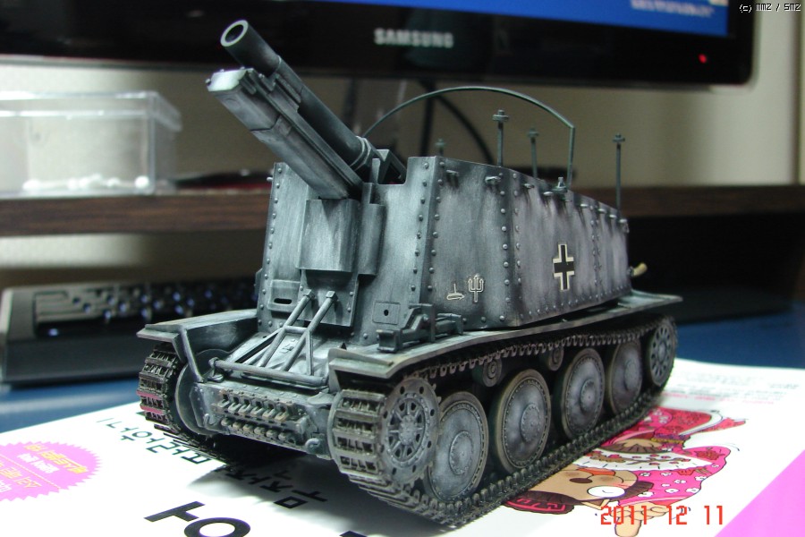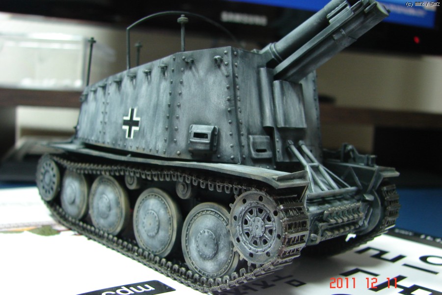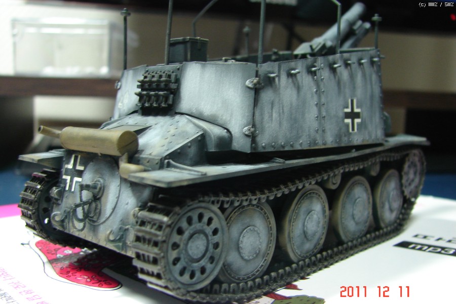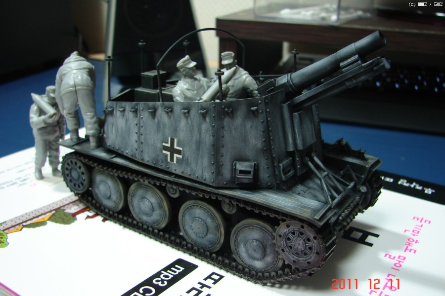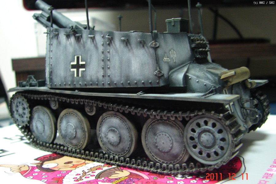 오래된 드래곤의 그릴레입니다. 인형은 미완성(색칠하기가 엄두가 안납니다...)입니다. 동계위장표현 역시 타미야의 웨더링마스터를 사용했는데, 생각보다 좋은 효과를 얻었습니다. 로드휠 주변은 머드로 살짝 표현해봤습니다.