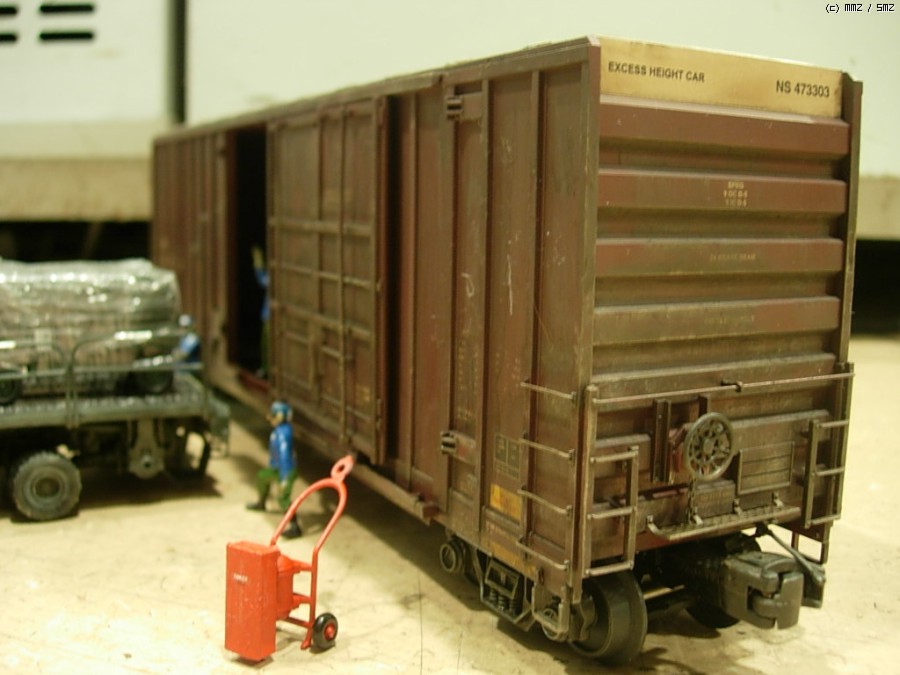 기차는 1/48 Hy cube Boxcar 완제품을 웨더링했는데