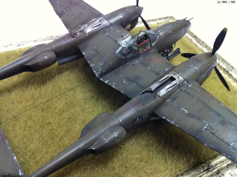 1/72 스케일 P38J LIGHTNING 을 만들어 봤습니다 보시면 아시겠지만 도색중 몇 부품이 환풍구 블랙홀에 빨려 들어가 미쳐 붙이지 못 한 부분이 있습니다;;