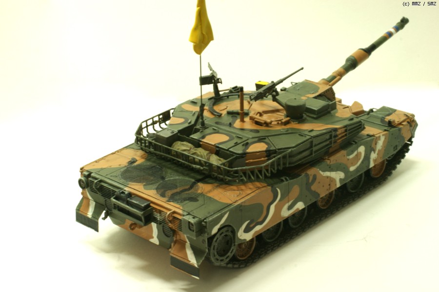 K1A1 후기양산형 입니다. 킷트는 아카데미제 K1A1을 사용하였구요 별매품은 브롱코제 가동식 트랙을 사용하였습니다. 가동식트랙 이놈...처음사용해봤는데... 조립하는게 일이더군요...