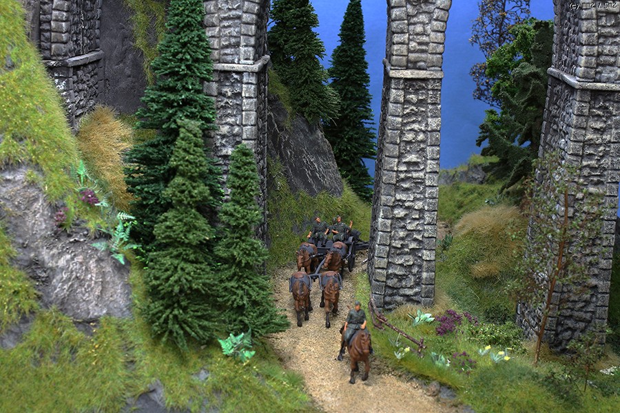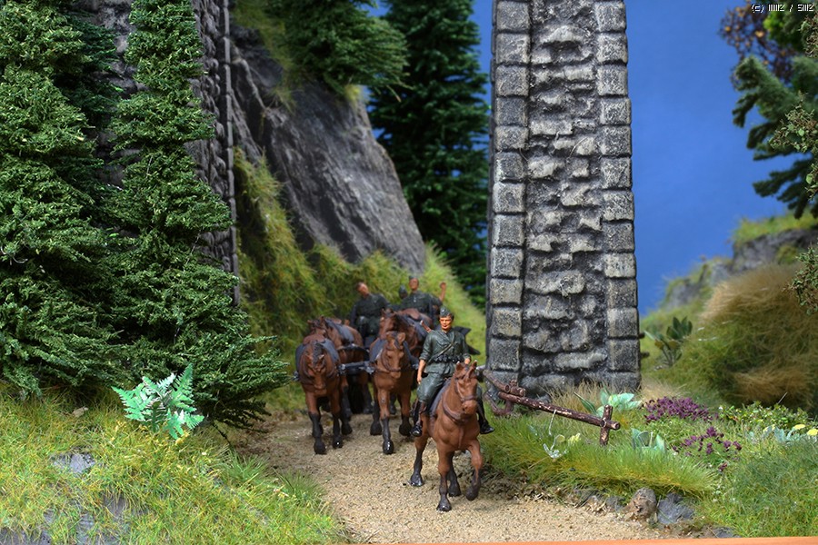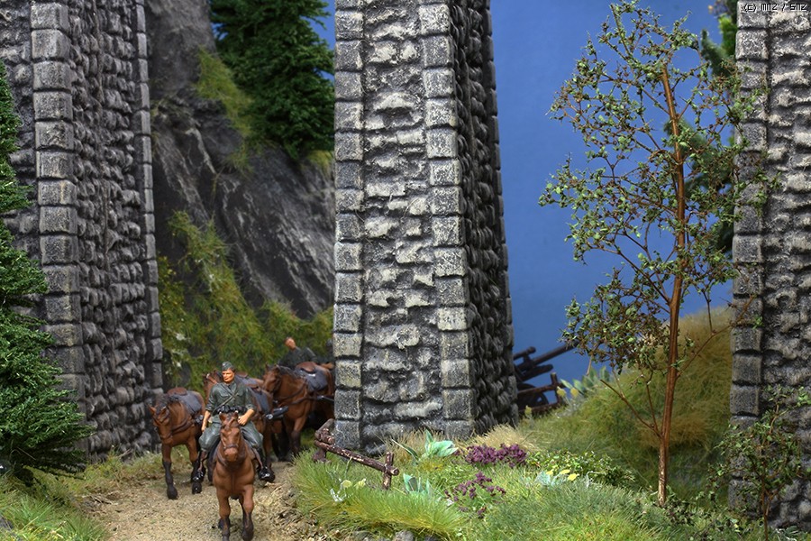 야포를 견인해가는 포병들의 선두가 보이네요.^^ 브릿지는 Noch 검정색 아크릴 페인트를 스폰지로 1차 쓸어준단음 오커, 화이트 순으로 질감을 살려주었습니다.