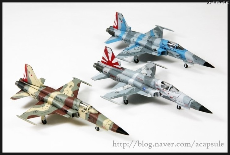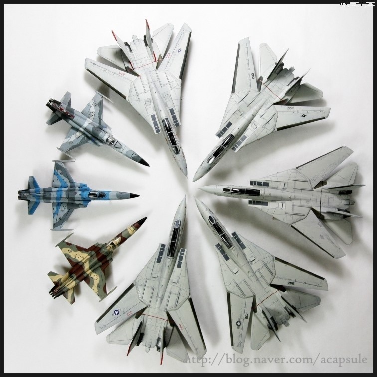 이번에 에이스와 같이 발매한 썬다우너즈 144를 제작해보았습니다...144는 처음 제작해보는데다 잘보이지 않아 애를 먹었습니다..ㅎㅎ 노안이 확실합니다...^^; 에이스의 톰캣 기트야 워낙 조립성과 디테일이 좋아 조립과 제작에는 문제가 없습니다..단 부분부분 욕심을 내자면 한도 끝도 없어 스트레이트제작과 데칼링에 신경썼습니다. 이지칼로 제작된 데칼의 퀄리티와 개선된 접착성이 제작시간을 많이 줄여주네요...제작하면서 느꼈지만 144도 손이 많이 가고 완성되었을때 성취감도 나름 좋습니다...F-5N형을 운영하는 어그레서 부대의 F-5N은 기체가 워낙작다보니 48위주의 작업을 하는 저에게는 오히려 부담이 되네요 ㅎㅎㅎ; 그래도 만들어 놓으니 나름 포스가 나옵니다...그리고 전투기들은 떼샷의 느낌이 좋습니다...ㅎㅎ