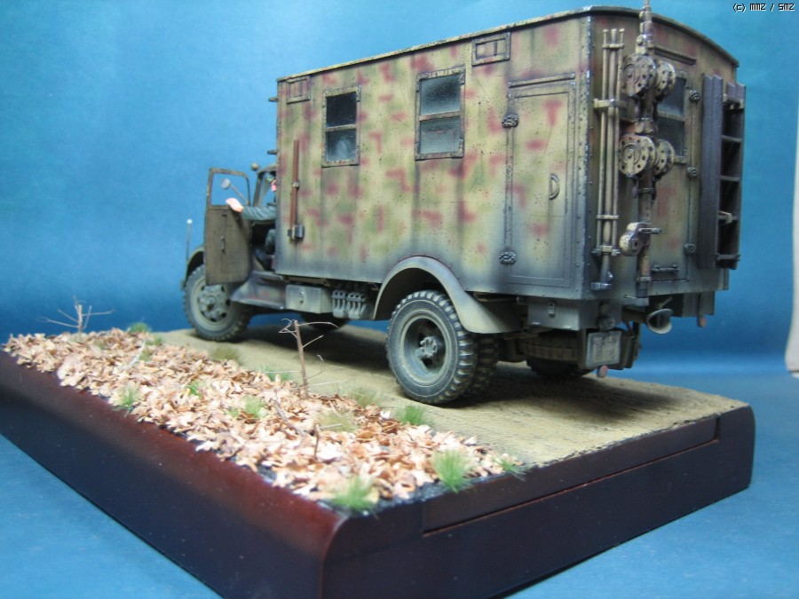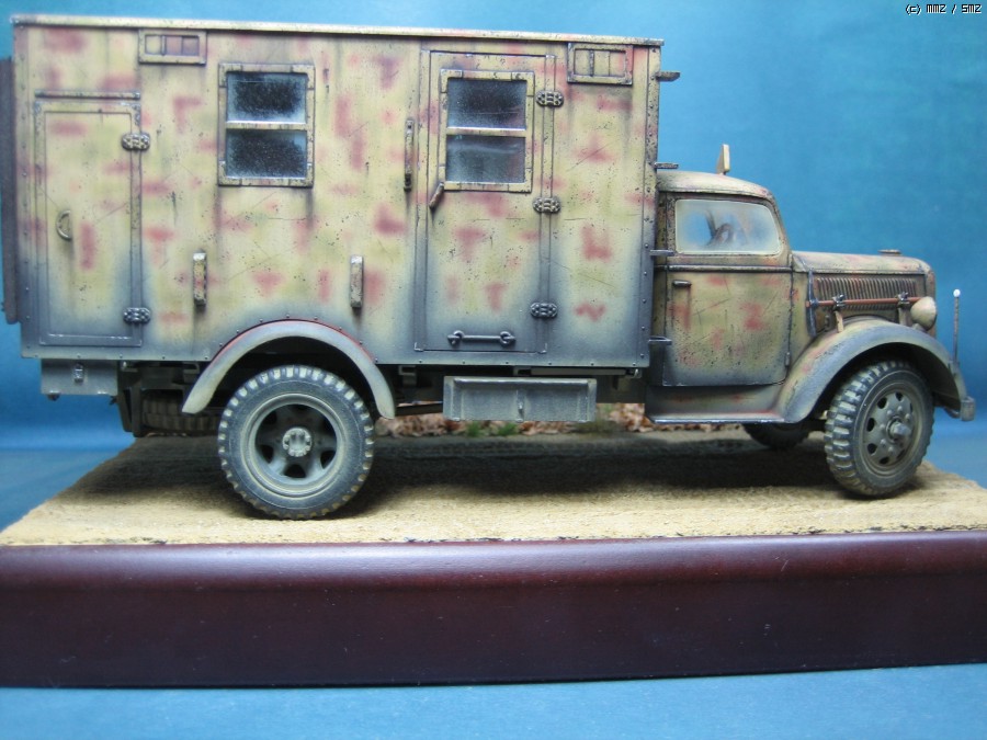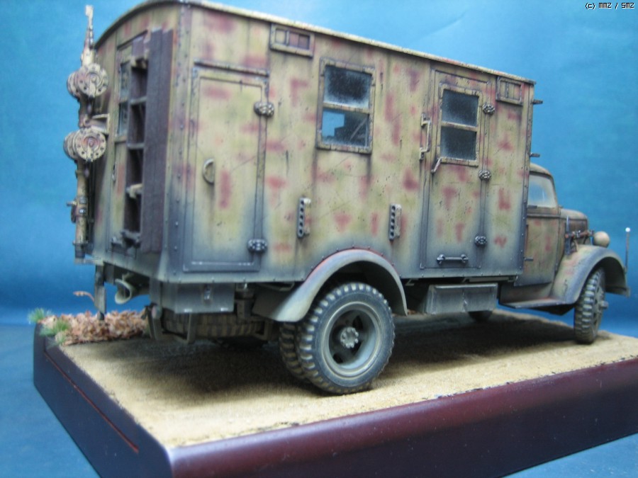 오래간만에 하나 올려봅니다.이타렐리 오펠블리츠 통신차량입니다.인테리어는 벨린덴제품을 사용했는데 거의 완성단계에서 적용 시키는 바람에 몇가지 사용못한 부품도 있습니다.인형들은 드래곤제 야전 통신소 세트를 사용했습니다.뭐 고증에는 좀 않맞지만 이런저런 이유로 이녀석들을 사용하게 되었습니다.자품자체는 딱히 안맞거나 하지 않지만 오래된 제품이고 비록 통신차량은 원래의 오펠보다 더 후에 나오긴 했습니다만,솔직히 그저 그런것 같습니다.이제 타미야나 드래곤에서 이차량을 뽑아주었으면 하는 바램이 생깁니다.사진 찍는 기술이 없어 원래의 색상보다는 왜곡된것 같군요.간단하게나마 베이스도 만들어 주었습니다.다음에 좀더 나은 모습으로 찾아뵙겠습니다.^^;