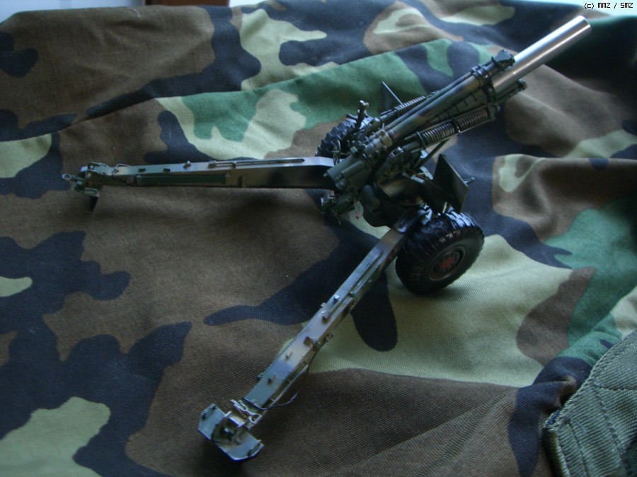 지금 소개해 드릴 모형은 국군의 포병이 지금도 향토사단이나 동원사단에서는 특히 동원사단에서 사단을 일반지원하는 화포인 155mm M114 A1 입니다. 6.25사변 초기 미군이 북한과 최초로 전투를 했을때 미군이 105mm M101을 가지고 오산죽미령 전투에 투입되었는데 당시 이포를 본 우리국군은 대포의 성능이 M3 105mm보다는 좋을지 모르겠으나 이러한 105mm경야포로는 북한의 전차를 제압할 수 없음을 알고 체념을 합니다. 그 후 금강 방어선에 미군은 당시에 이 대포를 배치하여 북한군을 저지하지만 논산 후방에서 역으로 접근하는 북한군에게 당할 수 밖에 없었고 대전전투에 패배한 딘소장은 부하들과 유리되어 진안부근에서 불순분자에게 잡히다 시피하여 사단장이 포로가 되는 사건이 벌어졌습니다.