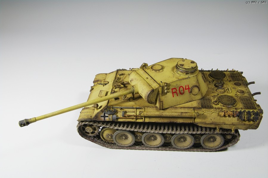 현재 완성한 팬저 3대중 마지막인 D형 프리미엄 키트입니다. 워낙 좋은 키트라 그대로 만들었으며, 단지 자잘한 에칭품을 맨손으로 작업하려니 짜쯩이 좀 나더군요. 군제락카 Dark Yellow를 기본색으로 단색으로 만들었습니다. 단색도색이라 별다른 재주가 없어 스폰지로 치핑만 잔뜩 했습니다. 과도한 치핑이 좀... 어색하군요.