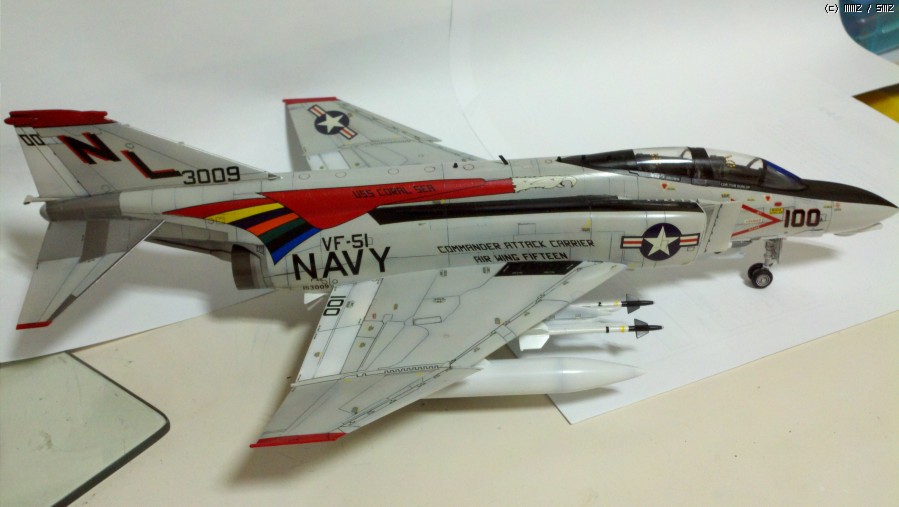 이제서야 완성했습니다. 캐노피에 고무실링을 표현해 볼까 하다가 몇몇 B형 팬텀의 사진을 보고 노란 실링이 없는것이 더 많이보여서 실링 표현은 패~~스 했습니다.(나중에 추가작업도 생각중이긴 하지만....) 제작된지 20년이 넘는 데칼을 붙이느라 다른 키트보다 신경을 많쓰였지만 완성하고보니 맘이 놓이네요. 스마트폰으로 찍은 사진이라 좀 그렇지만 올려봅니다.