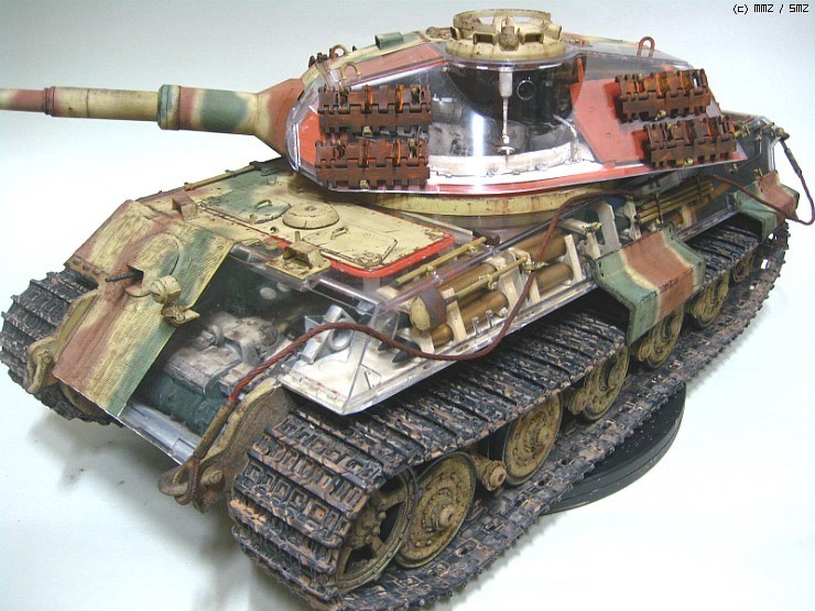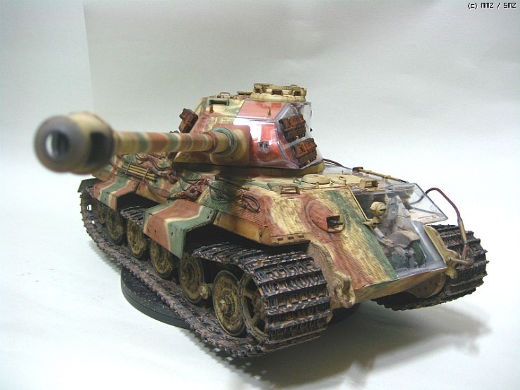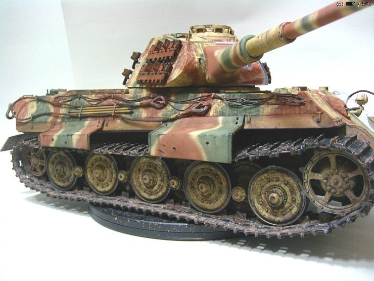 오랜만에 완성작 올립니다 1/16 스케일이고 트럼페터 제품입니다 킹타이거는 먼저 헨셀형 이후두번째 입니다 의뢰작이며 요구대로 반투명으로 제작을 했습니다 엔진룸제작시 좀애를 먹었는데