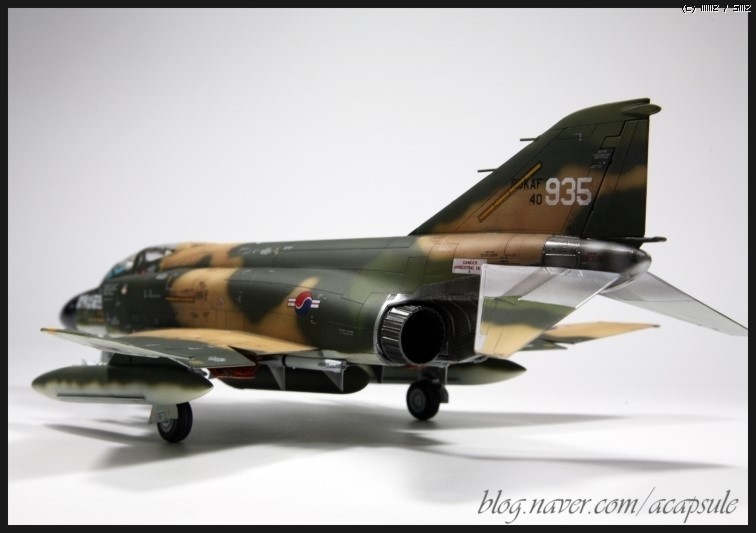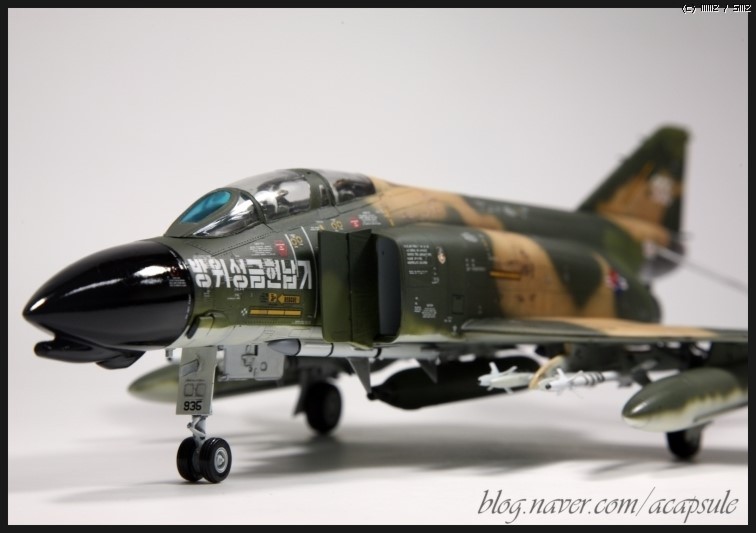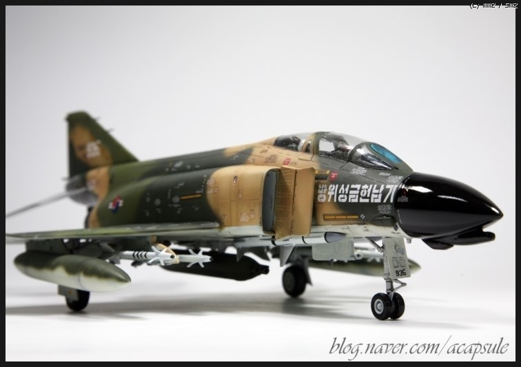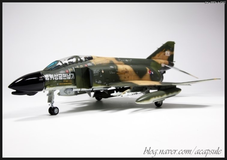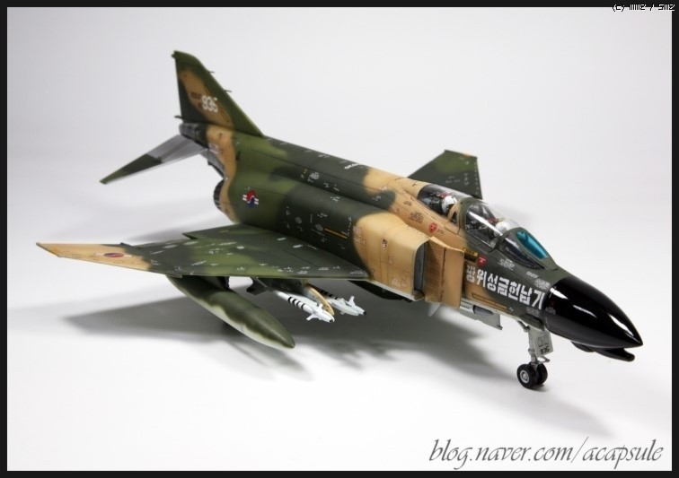 오랜만에 완성작입니다...이번 제작은 한국공군 F-4D 방위성금 헌납기입니다...40대이후의 세대에게는 아련한 추억이 있는 기체이기도합니다...개인적으로 48스케일의 팬텀은 첫작품입니다...144만 2대 작업해보았고 48로는 처음제작하는데 나름 덩치의 느낌과 육중함이 매력이 있는 기체라는 것을 새삼 느끼게 됩니다...데칼은 이지칼 첫 개발 당시 발매되었던 것인데 생각보다 작례들이 없다보니 작례겸해서 만들었지만 도색이 약간은 부족한 듯합니다..그리고 베트남 3색도장의 특징과 초기 기체의 특징인 무수히 기체 전체에 박혀있는 데이터 마킹이 특징이 있습니다만...D형 스텐실 마킹을 구하기가 어렵고 저희 회사에서는 아직 개발전이라 물론 개발하려고 준비는 하고 있습니다...해서 F-4E형 스텐실데이터를 (이미 발매) 노즈부분과 몇군데를 제외하고 사용했습니다...생각보다는 패널라인과 잘 맞아줍니다...ㅎㅎ 48용 스텐실데이터는 습식이라 시간이 좀걸렸습니다...이지칼이라면 시간이 많이 절약될 듯합니다...특히 32용은요...ㅎㅎ
