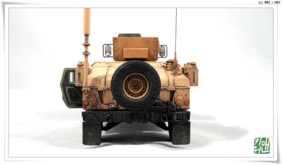 신제품 나왔을때 단품으로 시작을 했다가 디오라마로 구상을 하면서 차량 양 옆의 보조 캔은 자작으러 만들어 추가해주었고 레전드사 제품 중 Rhino Anti IED Device를 차량 앞에 추가 해 주었고 인형도 추가해서 디오라마를 완성 할 생각입니다.
