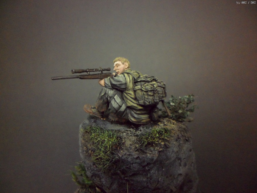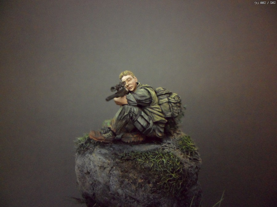 실제 스나이퍼라면 몸을 숨기겠지만 피규어 전체를 다 보여줘야하는 목적이 있는 작품이라