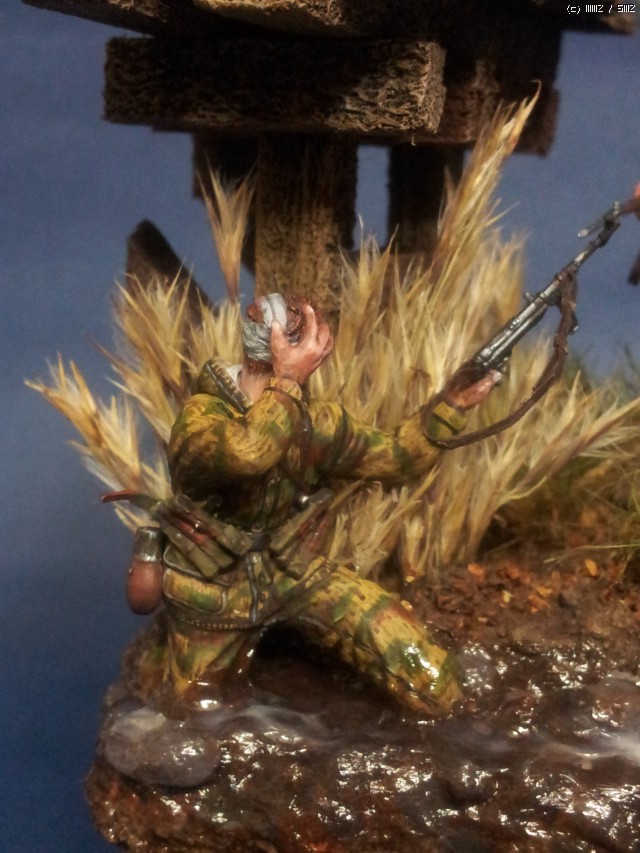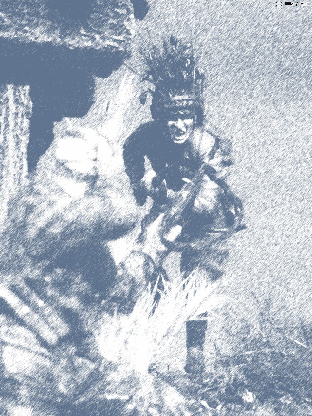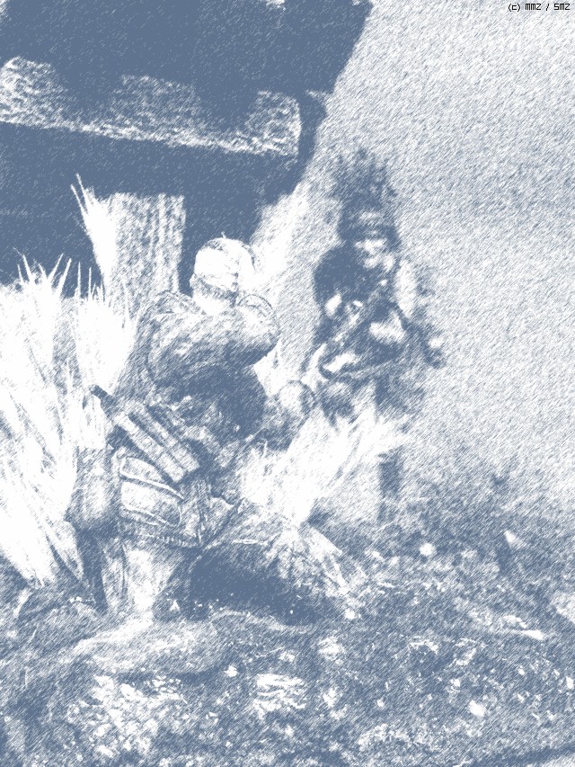 "온 세상이 피 빗으로 물드는 일몰을 등지고 , 산등성이 멀리서 뛰어오는 저것이