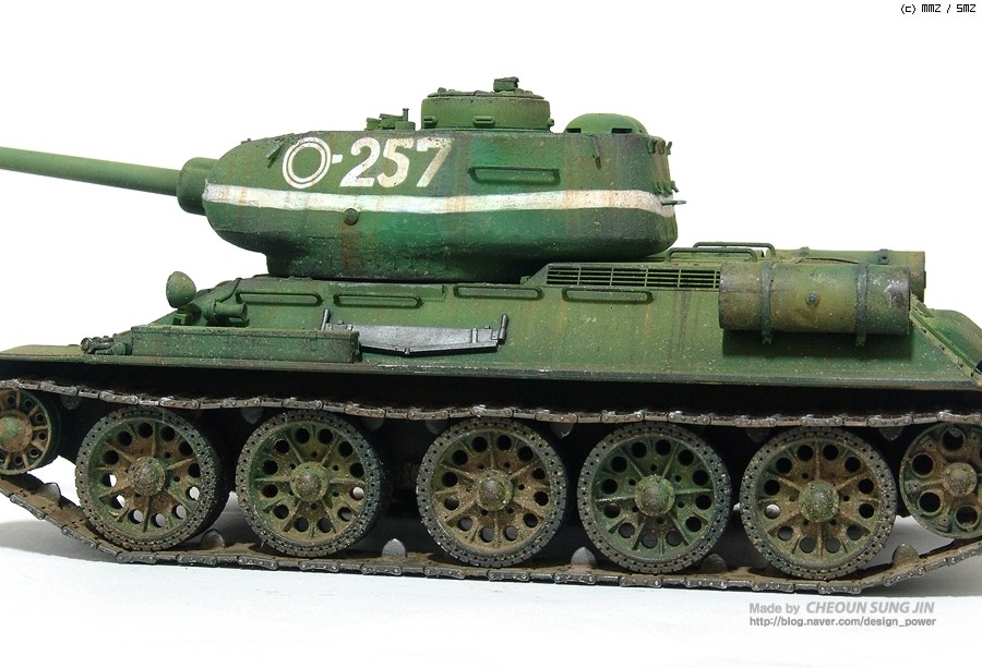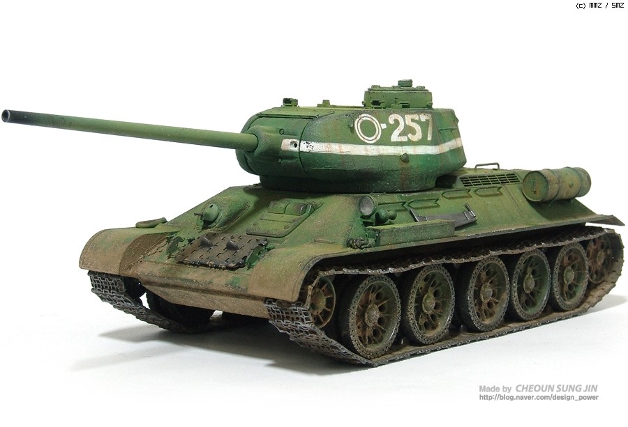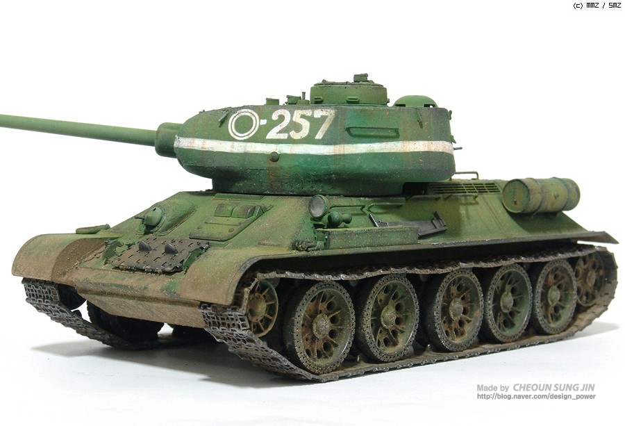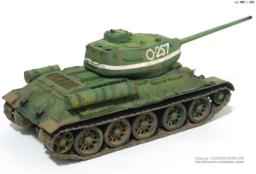 드래곤 제품의 T-34/85 with Bedspring Armor 1/35 입니다.
