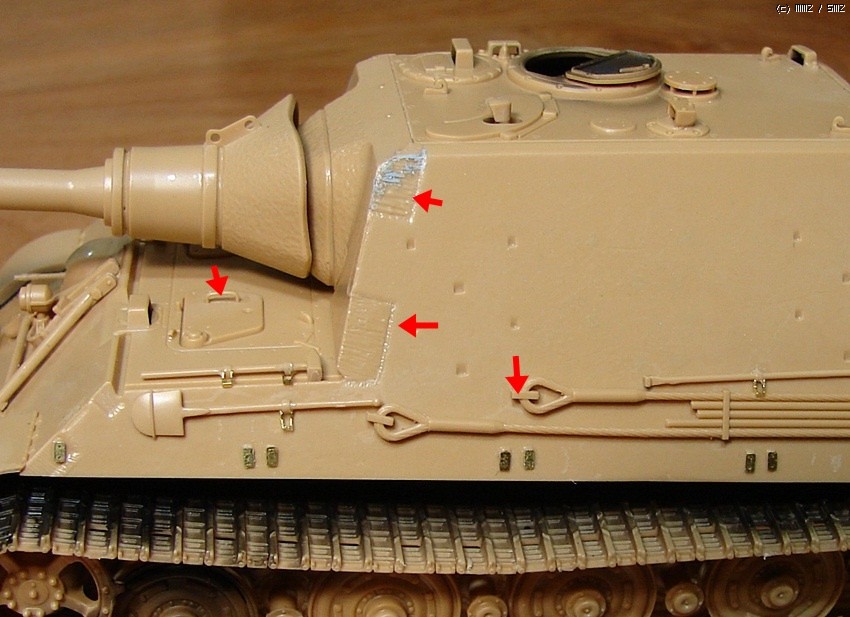 1/48 타미야 제품에다가 티거2용 보이저에칭을 일부 활용해 조립했습니다. 엔진룸 메쉬 부품 양쪽이 살짝 짧아서 속이 상하긴 했지만 아직까지 야크트티거용 에칭부품이 발매된게 없어 울며겨자 먹기로 붙여줬습니다.