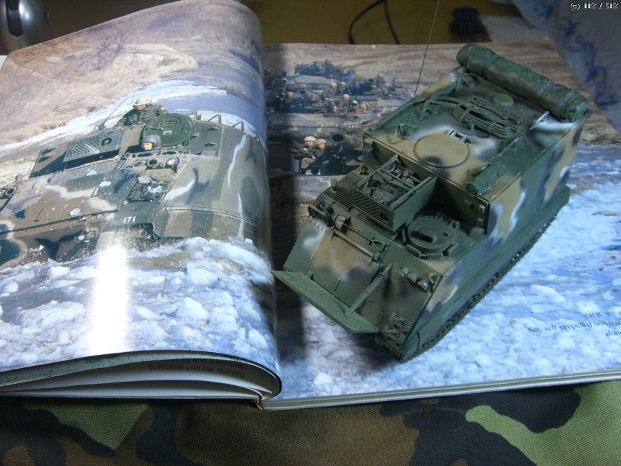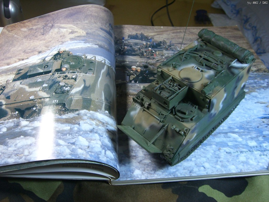 훈련중인 8인찌 포병의 훈련사진을 참고하여 만들었습니다. 배경은 80년대 중반인데 당시는 70년대의 2색과 달리 3색인데 지금의 위장무늬와는 또 다름니다. 지금의 위장무늬는 90년대 후반부터 달라진 것 같습니다. 과거엔 위장무늬 형식이 흰색이나 검은 색이 얇은 것 같은데 지금은 조금 둥글다고 생각합니다. 또한 공장에서 나올때의 상태를 유지하는 것 같습니다.