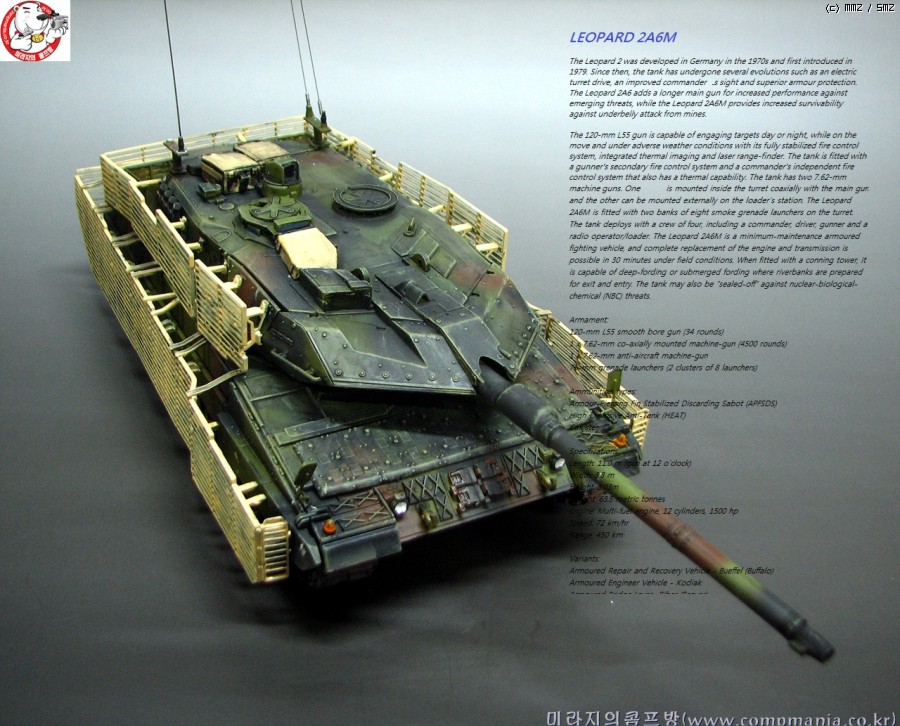 이 전차에 대해서는 레오파트의 멋진 라인을 까먹는다고 싫어하시는분들도 있지만 상당히 전투적인 느낌이 물씬나서 좋아하는 분들도 많습니다. 이라지도 그중 하나지요.. 제작은 스트레이트로 했습니다.]