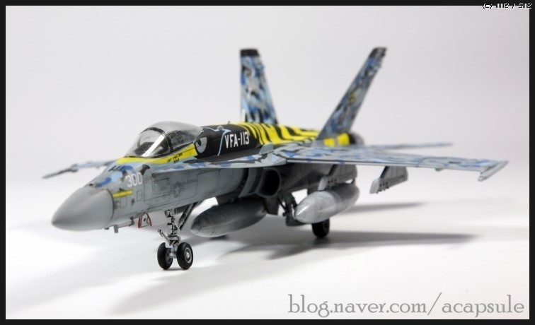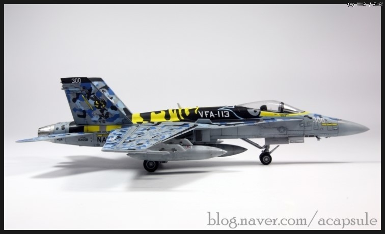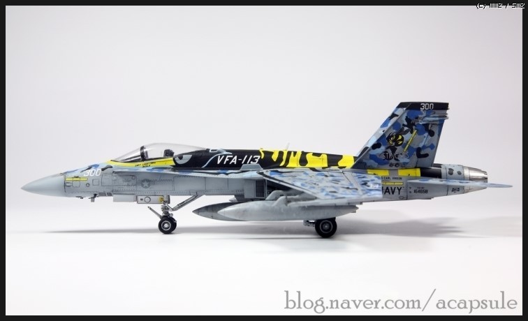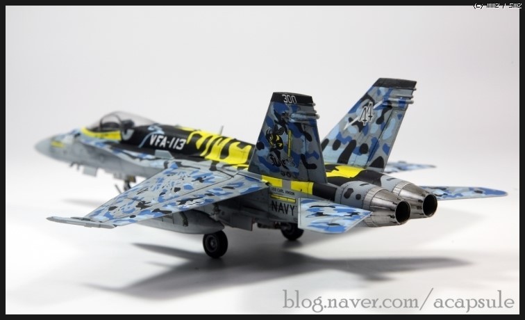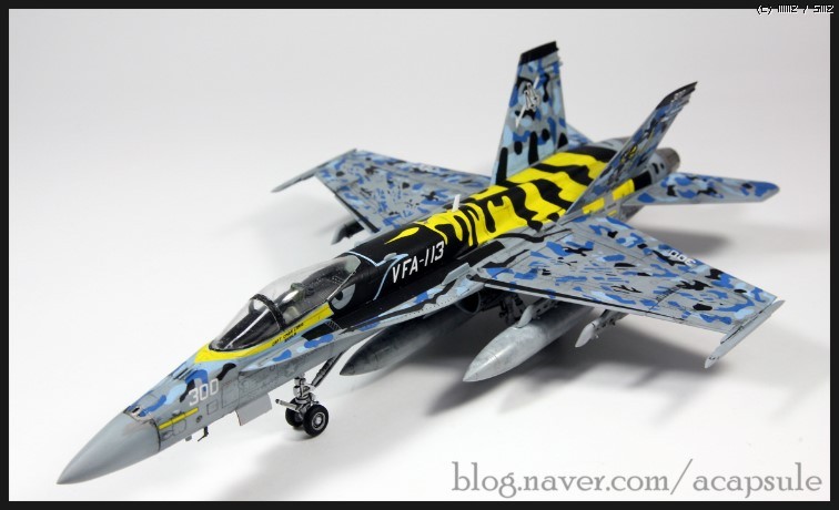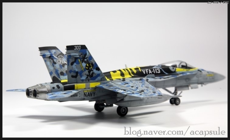 그동안 데칼 개발이 완료되면 제작하기위해서 작업보류중인 두가지 작업중에서 한가지가 완성되었습니다...미해군 칼빈슨호에 금년 4월 배치된 VFA-113 F/A-18C Yearone Super Bee입니다...말그대로 왕말벌입니다...기체도 말벌의 느낌이지만 말벌 데칼이 정말 잘어울리는 기체인듯합니다...이번 데칼은 기체 상면에 거의 모든 면을 랩핑해야하는 데칼입니다...데칼도 전부 새로 그려야하는 작업이어서 생각보다 오래걸린 데칼작업이었습니다..데칼인쇄는 다 끝났고 가이드작업중입니다..먼저 제작해보면서 제작팁을 가이드에 넣으려고 따끈따끈한 데칼을 붙여봤습니다...밀착성은 역시 좋습니다..그리고 발색을 좋게하기 위한 여러가지 작업도 해서 노란색의 발색도 너무 이쁘다는 생각입니다...72스케일이지만 아카데미 72호넷은 정말 디테일이 발군입니다...명품이란 말이 명불허전입니다...ㅎ