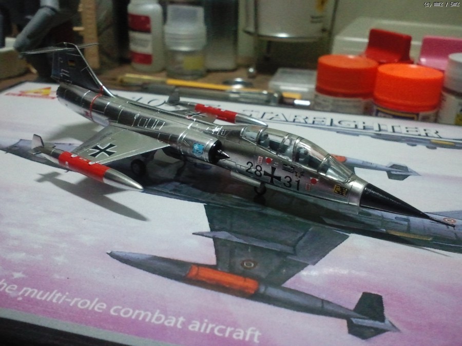 에이스 1/144 F-104 스타파이터 입니다. 도색은 스파즈스틱스 도료 테스트를 병행했기때문에 기존 칼라링과는 다르게 진행됐습니다. 데칼은 킷에 포함된 독일군마킹으로 마무리 했습니다.