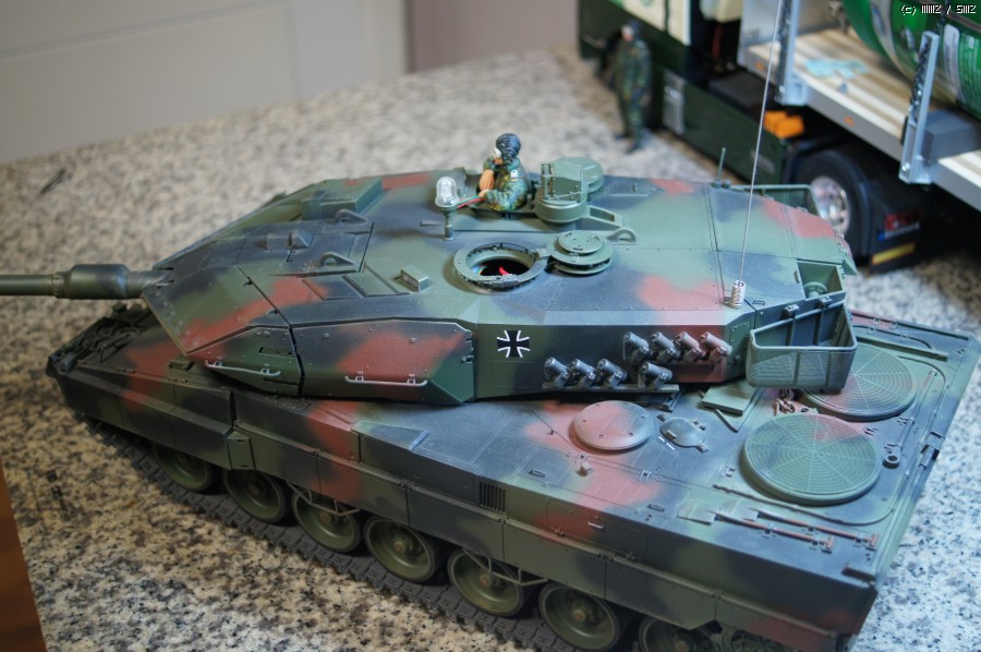 1:16 레로파드 2A6 RC 모델입니다. 실제 탱크와 거의 같은 기능으로 작동됩니다. 포 쏠때 플래쉬 작동되고 포신 후퇴, 진동 , 소리까지... 기총도 마찬가지이고요. 모든 등도 점등되는데 광섬유를 비롯한 LED도 사용됩니다. 정말 감탄 할 정도로 잘만들어진 모델이라고 생각되네요...