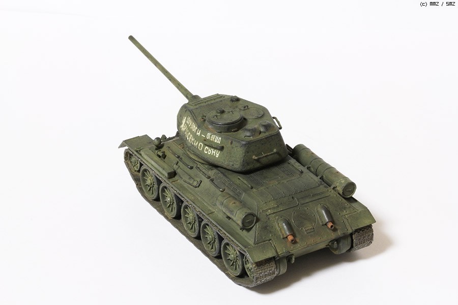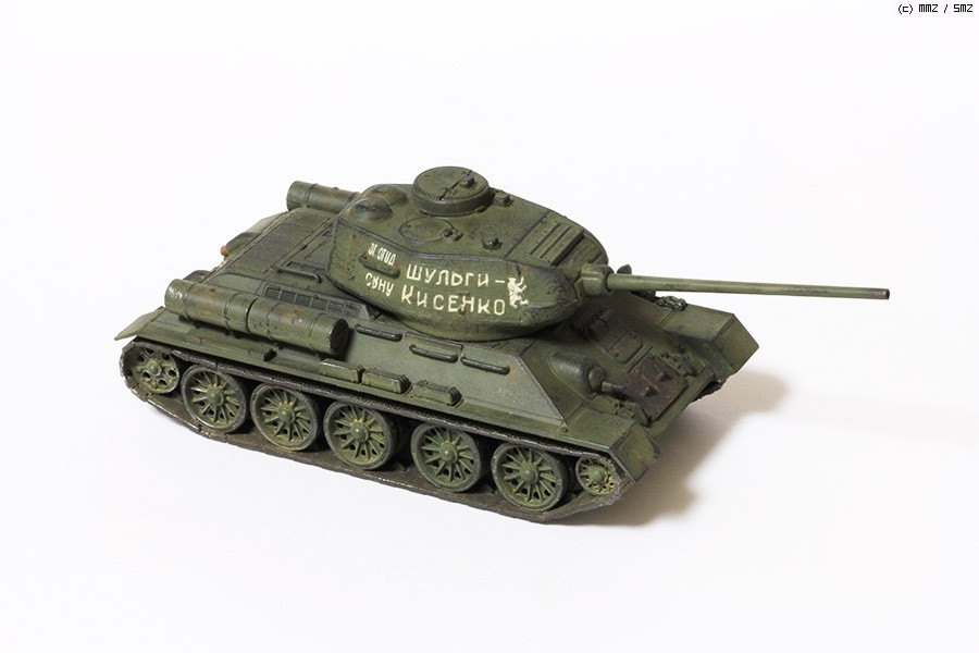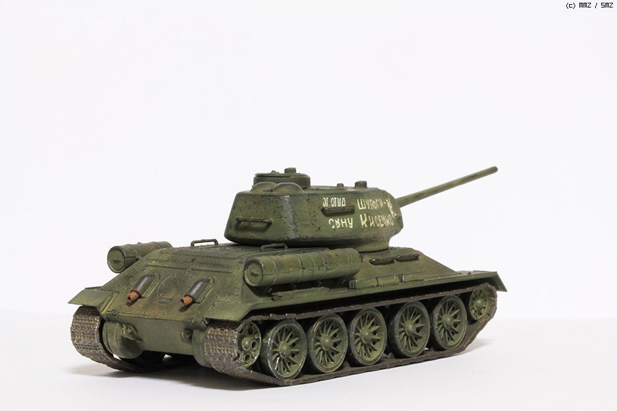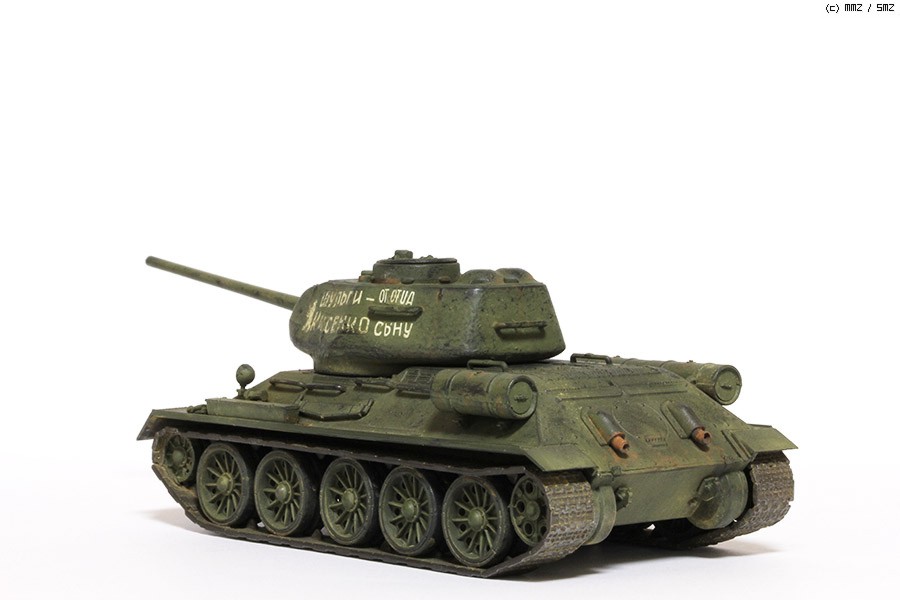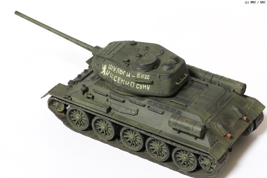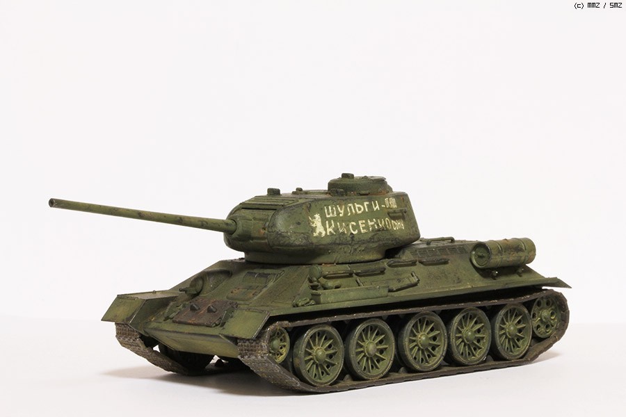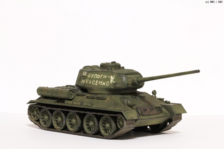 독일 시골 마을 을 배경으로 제작 예정 인 디오라마 에 올라갈 T-34/85 입니다. 트랙 이 1개씩 모자라는 문제가 있는 킷 이죠. 그래서 두개를 구입했습니다. 하나 는 한국전 당시 피격당한 상태로 제작 했고 하나 는 기동 중 인 상태 로 만들었습니다.