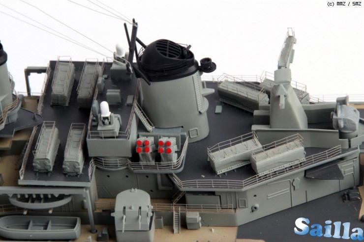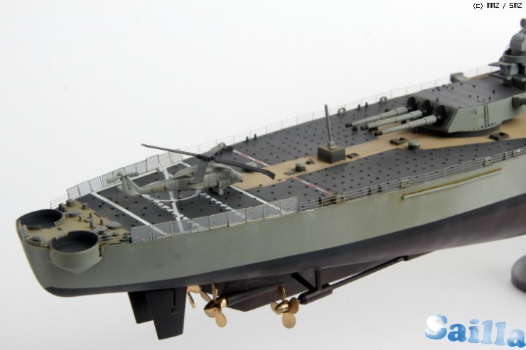 늘린런너를 이용한 리깅. 잉여에칭을 이용한 헬기 블레이드. 비즈샵 체인을 이용한 닻줄. 네오듐자석을 이용한 받침대. 알미늄호일을 이용한 깃발펄럭임효과.