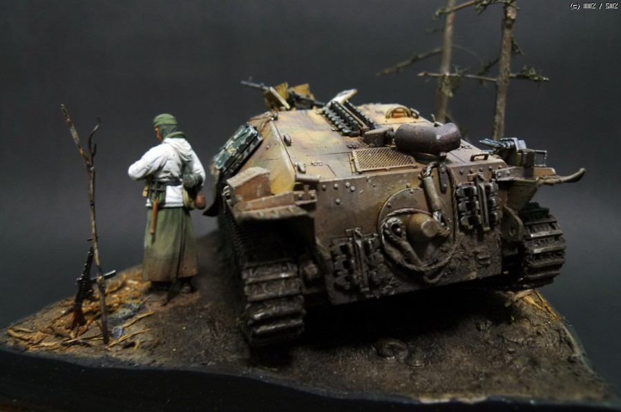 진흙속에 도로는 막히고 합류하기로 했던 후속부대는 감감무소식입니다..작전이 점점 꼬여가는 아르덴느전투의 모습을부족하게나마 표현하고 싶었습니다.