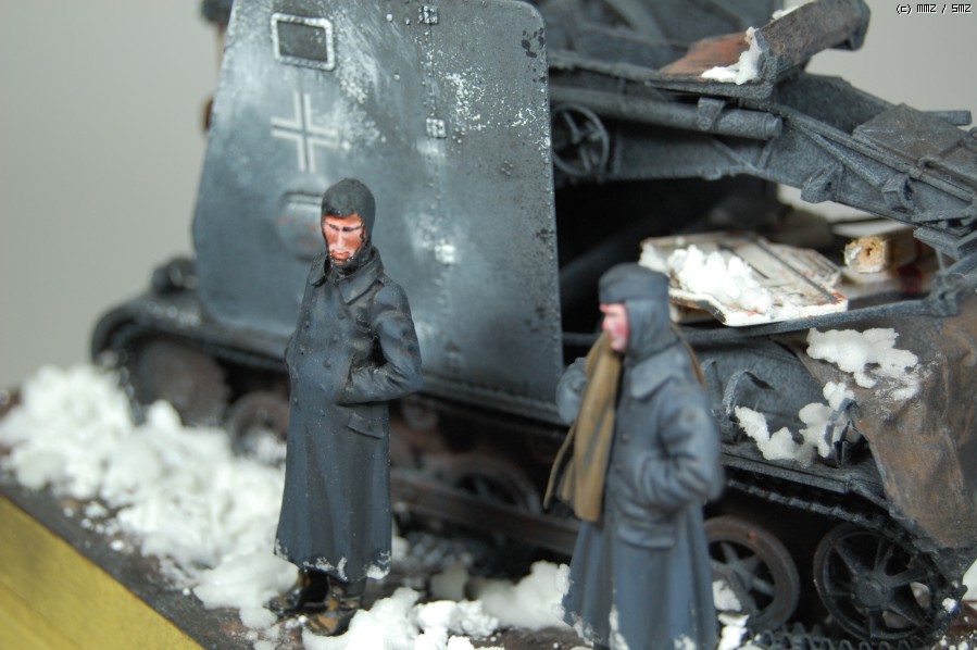동계위장이 벗겨진게 아닌 추운겨울 하얗게 철판에 서리가 낀듯하게 표현하려고 했는데 많이