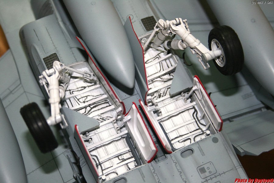 위, 아래 부리 사이의 데칼여백을 제거하고 노즈기어 첫번째도어 끝부분만