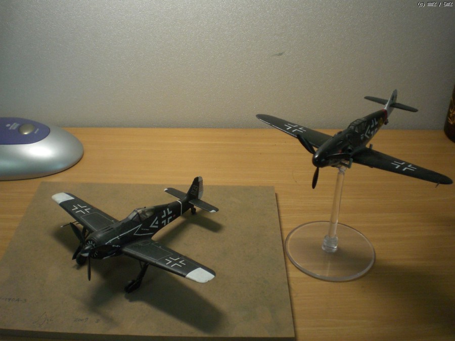 선배가 F-22를 던져주기전 검은색/흰색만 대충 구해다가 막 만들었던 1/48 Bf 109와 Fw 190입니다.