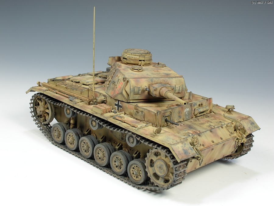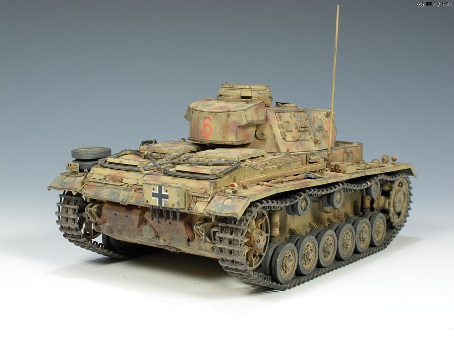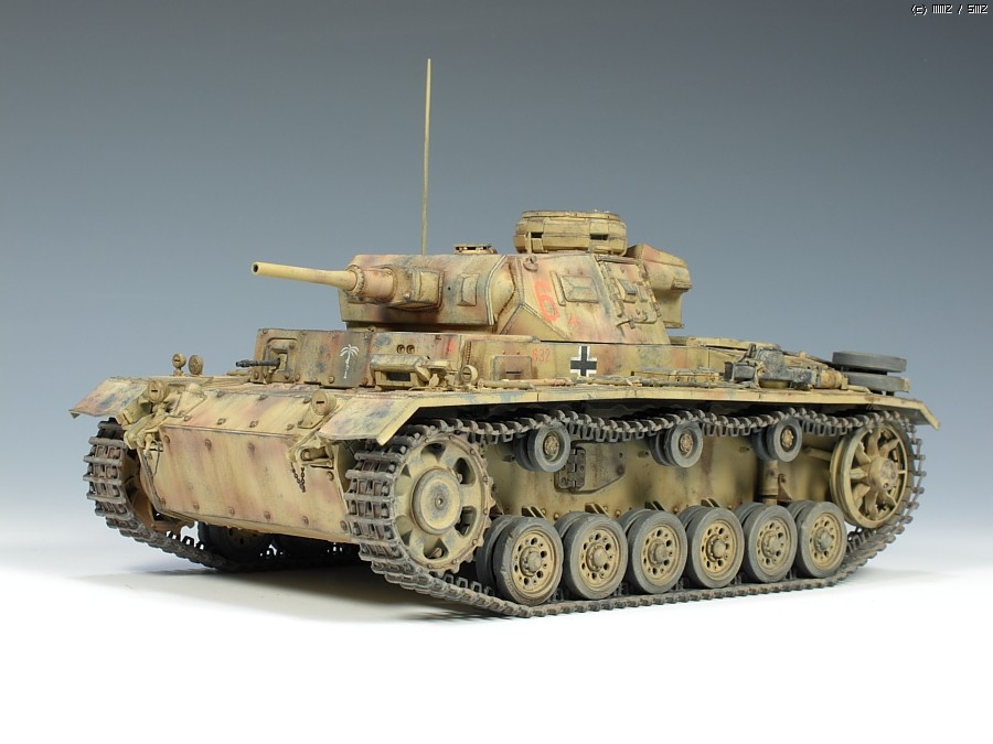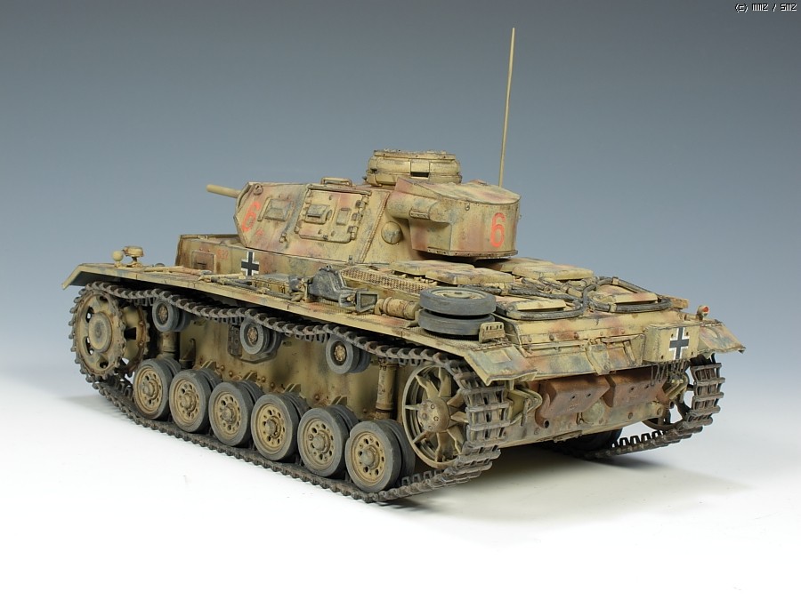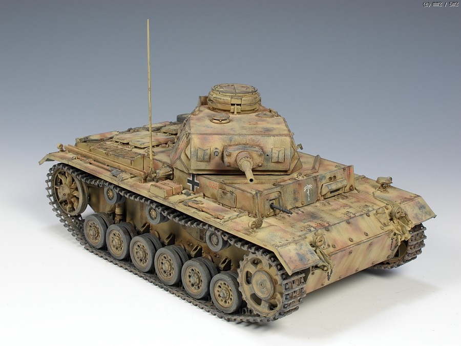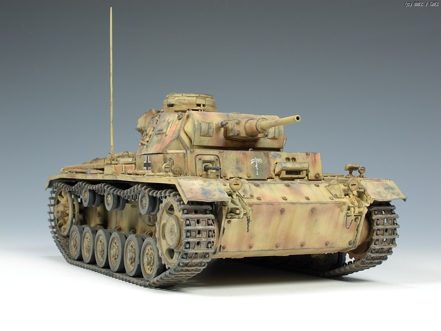이건 드래곤제 3호전차 H형 입니다. 스마트킷이라는대 부품만 무지많은 시간도둑 키트입니다. 누리끼리하고 좀 바랜색의 사막도색을 시도했는대 결과는 미지근 합니다. 기본색에 버프색을 더 첨가해서 도색했습니다. 치핑은 좀 연한 회색계열로 했습니다.