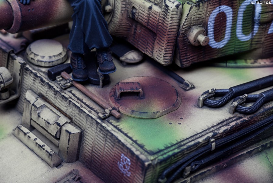 안녕하세요~^^: 본의 아니게 연속으로 계속 올리게 되네요...;;이번 작품도 역시 타이거 입니다.드래곤 제품으로서 발매당시 엄청난양의 별매품이 포함되었던 화제의 후기형입니다.이미 완성되었던 제품을 약간 손봐준후 리페인팅하고 인형을 하나 올려주었습니다.인형은 007호 차량에 어울리는 미하일 비듬만씨입니다.^^;물론 이자세는 차량 넘버가 다른걸로 아는데 그냥 새킷에서 인형만 따다가 사용하였습니다.헤드는 전혀 않비슷하기에 알파인제 비듬만씨 머리를 사용하였습니다.
