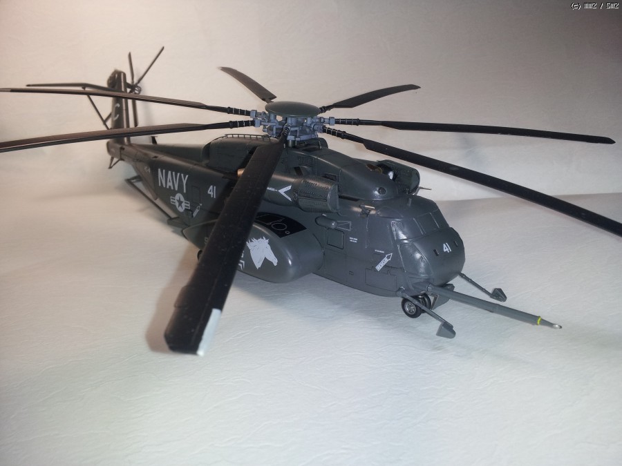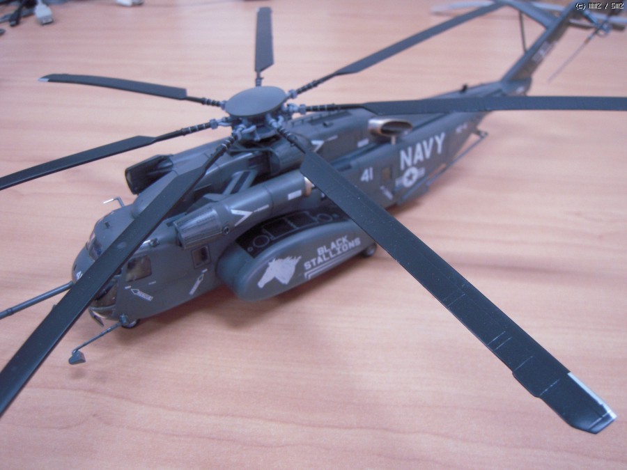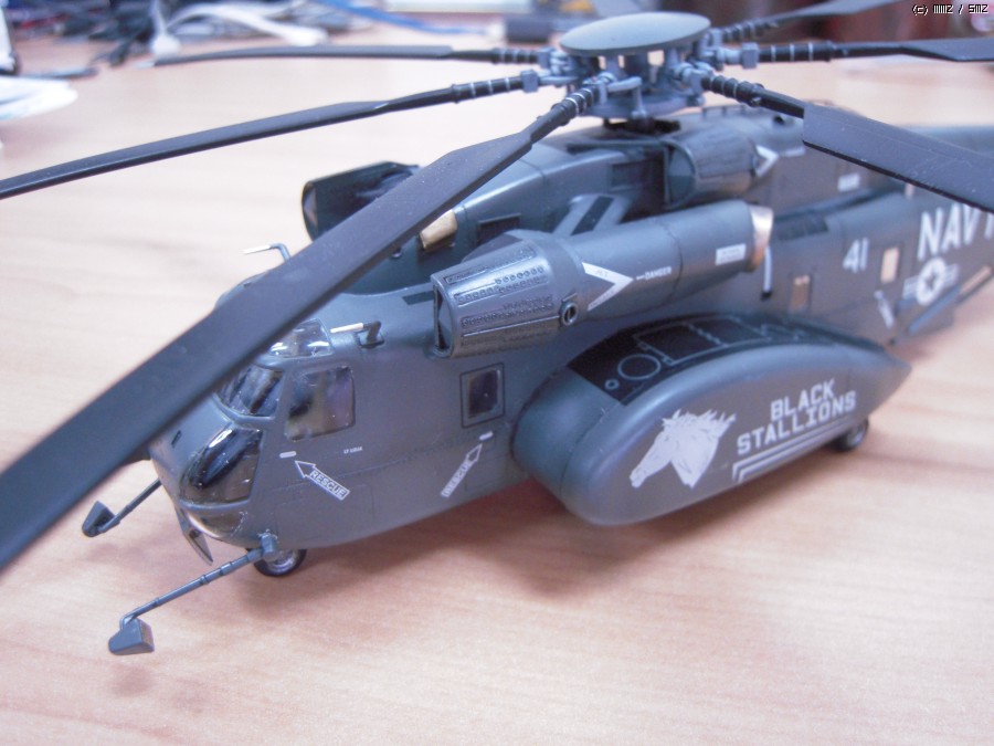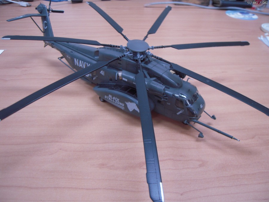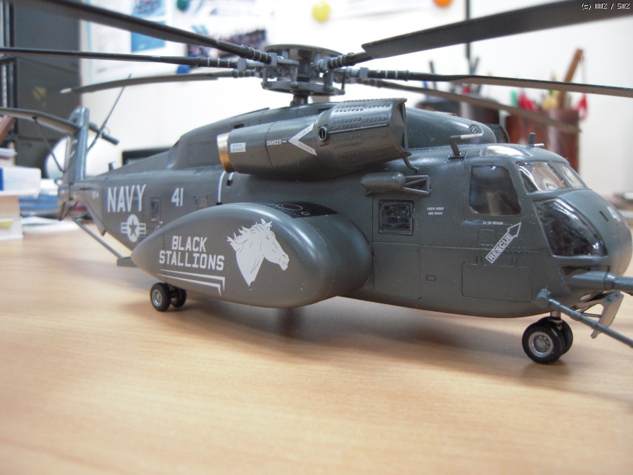 일 때문에 진기사에 갔다가 이 헬기가 바다에서 낮게 날면서 무언가를 끌고 다니는 모습을 멀리서 봤습니다. 처음에는 CH-53이라고 생각했는데 같이 일하시는 분이 MH-53이라고 알려주시더군요. 끌고 다니는 것은 소해장비이고. 그분은 해군에서 기뢰관으로 계시다가 퇴역하시고 저희랑 합류하셨는데, 마침 이탈레리와 아카데미의 키트가 있어 크기가 너무 크지 않은 이탈레리 키트를 보고 만들어 드리겠다고 약속을 했습니다. 그리고 반년 이상 지났는데 그분이 개인사정으로 저희 회사를 그만둔다고 하시더군요. 그래서 부랴부랴 조립해서 늦지 않게 약속을 지켰습니다.