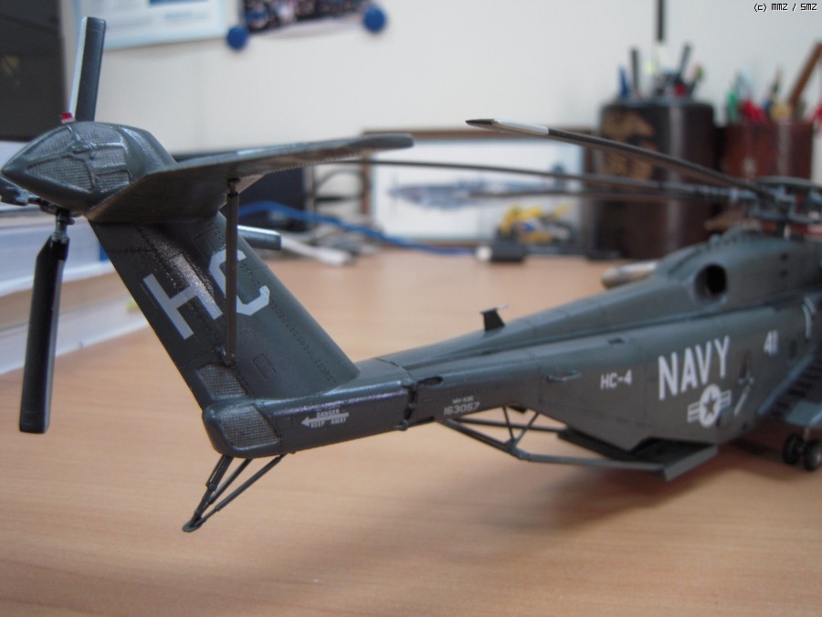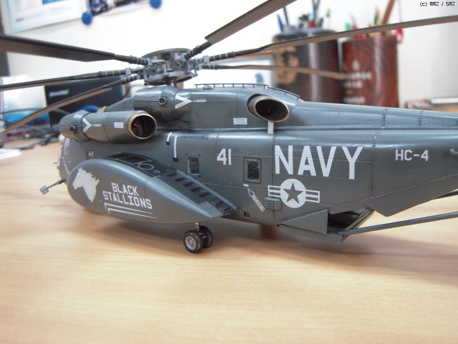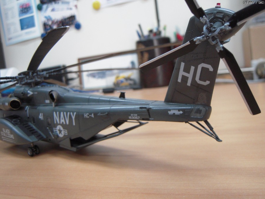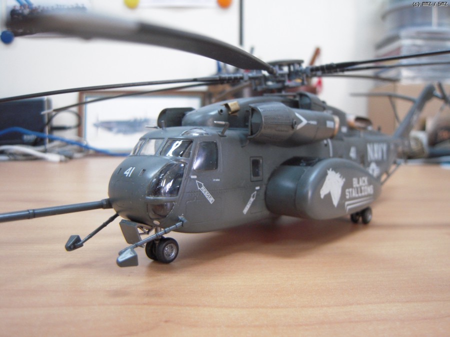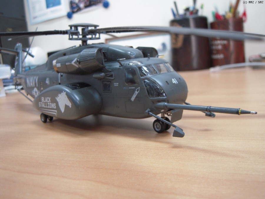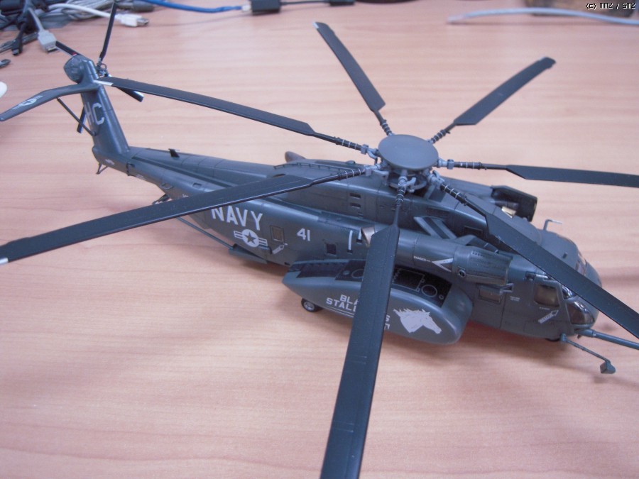 일 때문에 진기사에 갔다가 이 헬기가 바다에서 낮게 날면서 무언가를 끌고 다니는 모습을 멀리서 봤습니다. 처음에는 CH-53이라고 생각했는데 같이 일하시는 분이 MH-53이라고 알려주시더군요. 끌고 다니는 것은 소해장비이고. 그분은 해군에서 기뢰관으로 계시다가 퇴역하시고 저희랑 합류하셨는데, 마침 이탈레리와 아카데미의 키트가 있어 크기가 너무 크지 않은 이탈레리 키트를 보고 만들어 드리겠다고 약속을 했습니다. 그리고 반년 이상 지났는데 그분이 개인사정으로 저희 회사를 그만둔다고 하시더군요. 그래서 부랴부랴 조립해서 늦지 않게 약속을 지켰습니다.