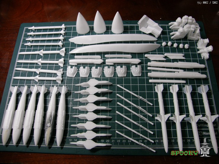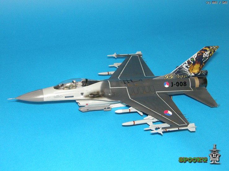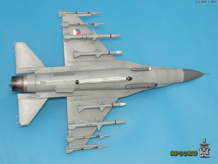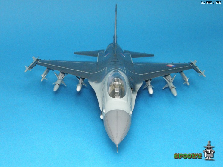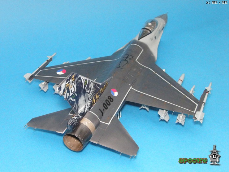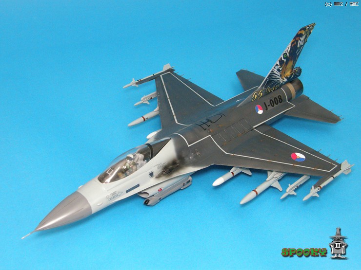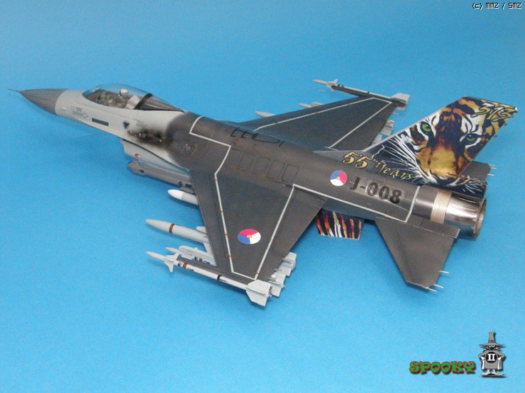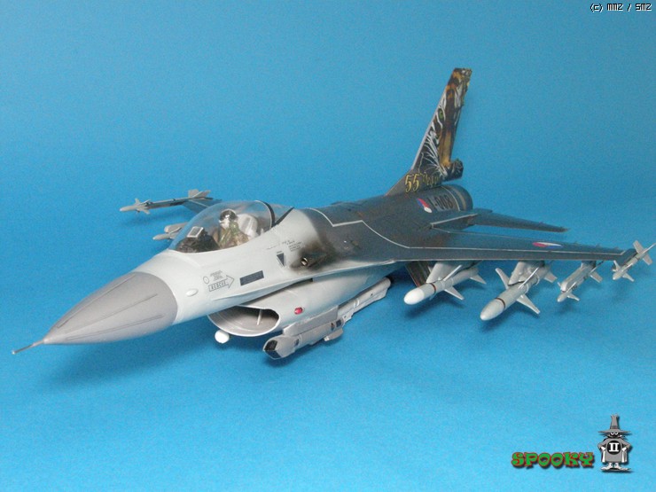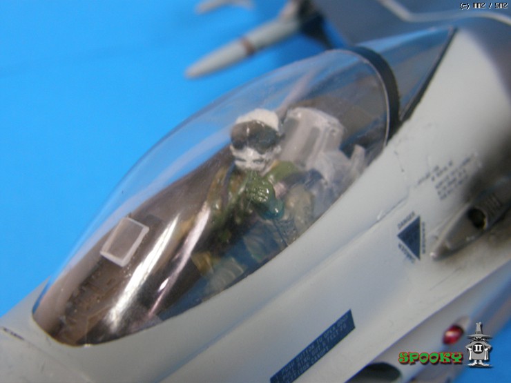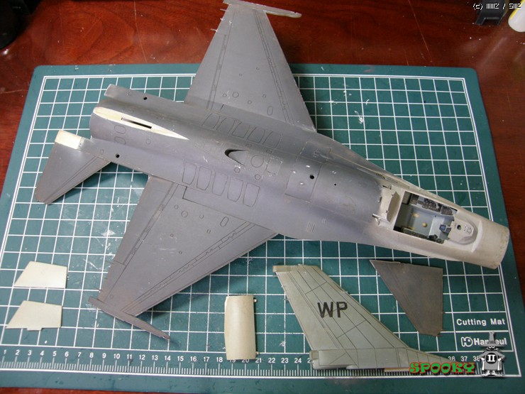 레이돔, 파일런, 무장류(스패로우 제외), 에어브레이크, 사출좌석과 파일럿은 레진 복제해주었고 캐노피와 수직미익, 스패로우 미사일은 작업중인 강남 F-16XL에서 유용하였습니다.