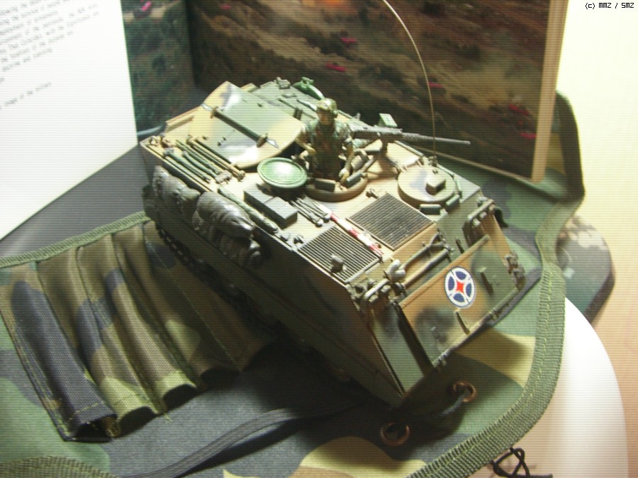 오늘 소개할 모형은 M106A1로서 M113계열의 장갑차의 일종으로 M113이 기계화 보병을 탑승시켜 이동하고 전투를 벌인다면 이 장갑차의 경우는 기계화 보병대대에 소속되어 예하부대를 화력지원 조명지원 연막차장등을 실시하며 81mm와 155mm자주포 사이의 사거리에서 임무를 수행합니다.