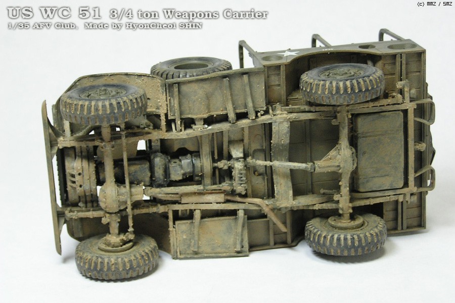 눈에 안 보이는 차체 하면은 마음 놓고 웨더링. 반쯤 굳은 지코트를 아크릴과 함께 물에 개어서 바르고 적당히 마른 다음 털어내기를 반복했습니다. 좀 아쉽지만 그런대로 약간의 흙덩이처럼 보인다고 최면 걸고 있습니다.