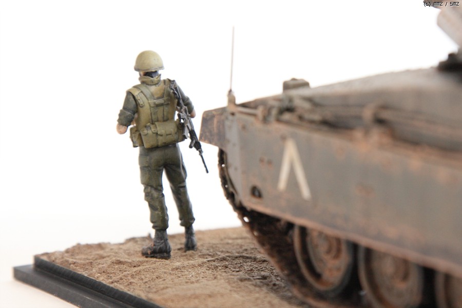 전체 에나멜 붓도장이구요, 메르카바의 실제 사진들을 열심히 비교해 보니 '시나이 그레이' 색상보다는 회색빛이 더 많이 들어가야 할 것 같아 색을 조색하여 수 차례 필터링을 덧입혀서 색감을 맞추어 보았습니다.