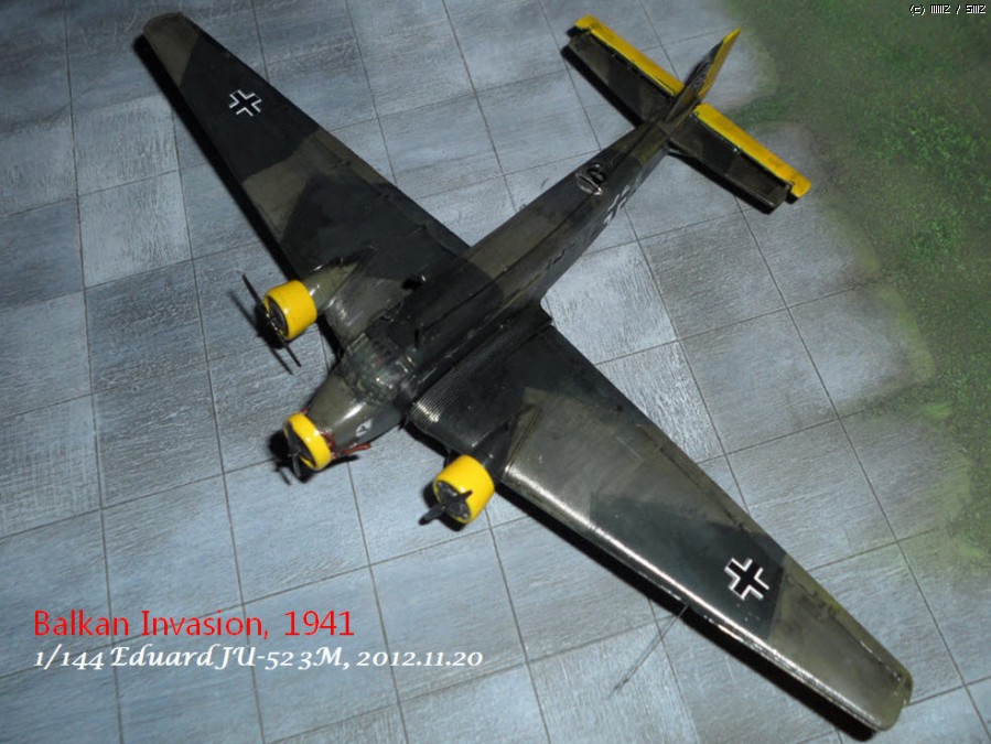 영화 '발키리'를 보고 생각이 나서 Ju-52를 제작하게 되었습니다. 1941년 발칸반도 침공사양으로 키트는 에듀아르드 1/144입니다.