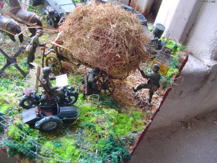 레지스탕스가 연합군 특공대를 숨겨주어서 검문을 통과하려는데 독일군이 볏집을 총검이나 쟁이들로 쑤셔서 수색하는 장면 입니다