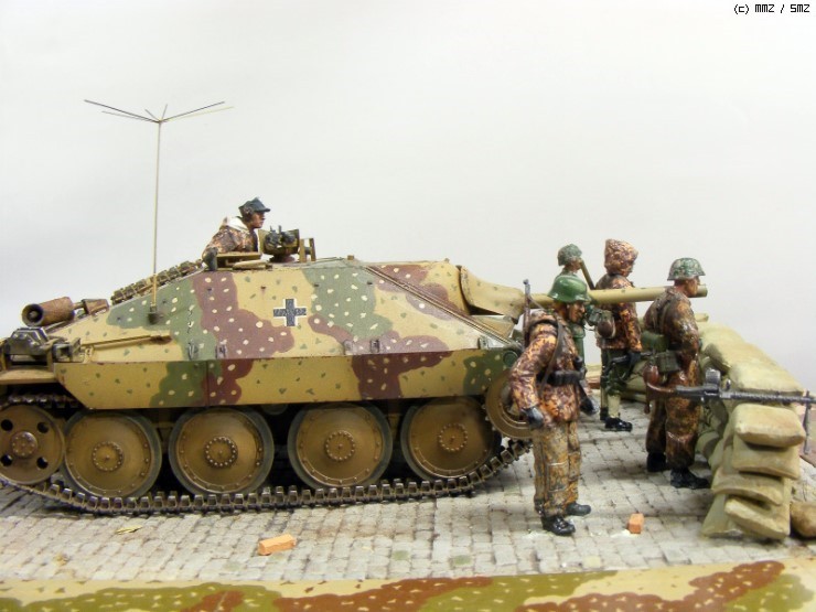 아카데미 헷쳐입니다. 파괴된 베를린시가에서 매복하여 붉은 군대의 전차를 기다리고 있는 모습을 연출해보았습니다. 패색이 짙어가고 있는 절망적인 상황에서의 병사의 두려움과 비장함을 표현하고자 했는데 도색실력이 따라가주지 못하는군요. 디토이즈 에칭세트,드래곤 , 알파인, 호넷사의 인형 등을 사용했습니다. 사진은 서동환님이 찍어주셨습니다. 한 해 마무리 잘하시기를 바랍니다. 감사합니다.