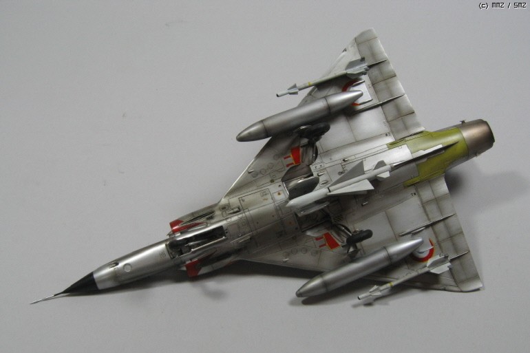 앞쪽 국적 마크데칼 붉은 색은 스텐실... 전체적으로 기본 은색을 칠한뒤 에어브러시로