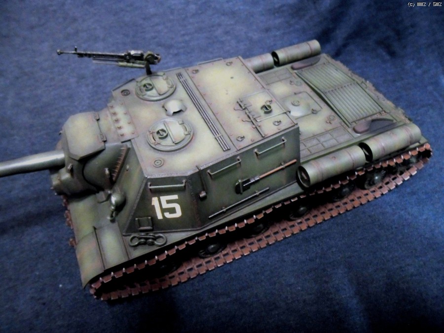 이 킷은 런너 달랑 두벌에 궤도는 디테일 허전한 두개를 연결해야 한쪽이 완성되는 것이라 트럼페터 KV 전차에서 남는 고무궤도를 신겼습니다만.. 한쪽은 실수를 해서 티가 나네요. ㅠ