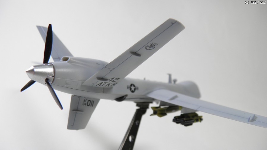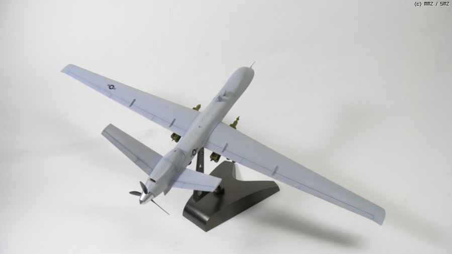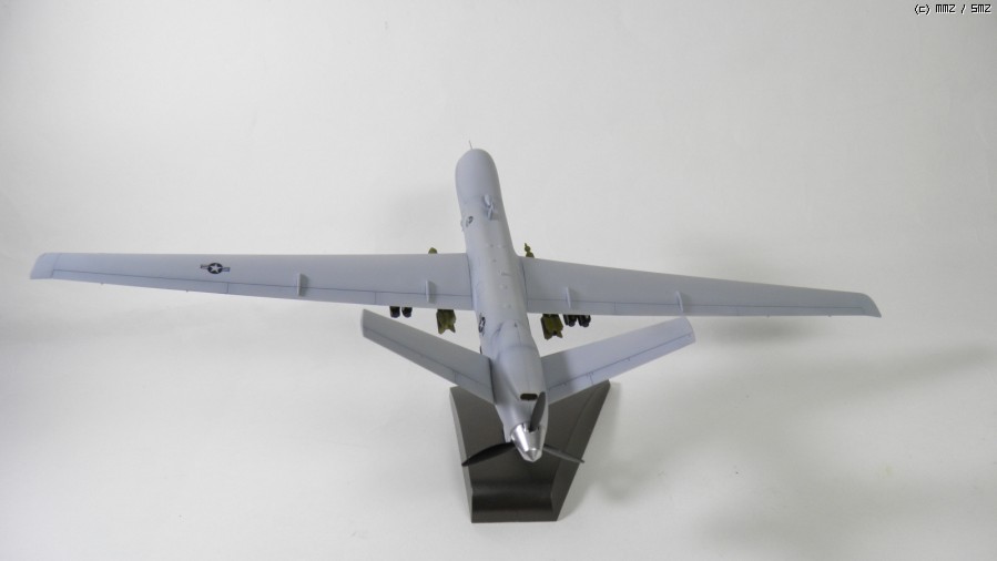 상부, 하부접착에 주익 2개, 미익 3개, 프로펠러, 파일런4개, 카메라 및 그외 센서와 공대지 무장이 런너 2장에 구성되어있는 상당히 단순한 구성입니다.