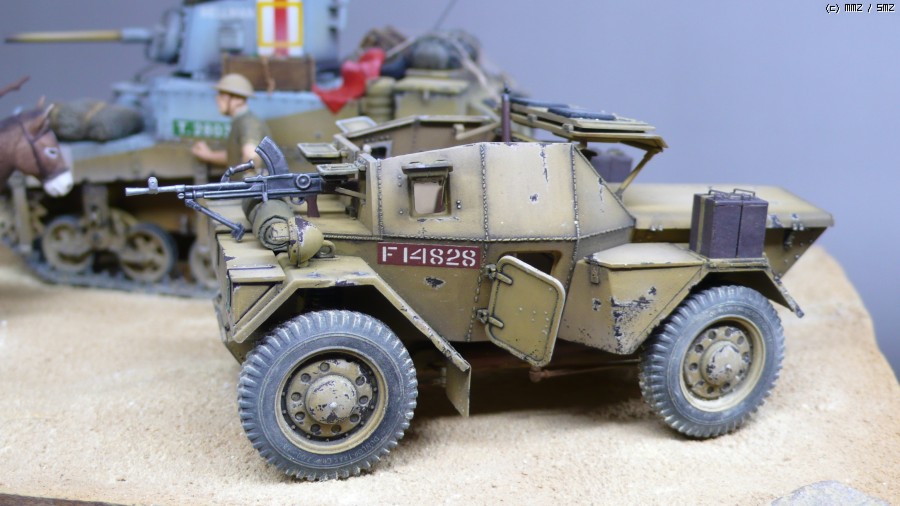 안녕하세요. 아카데미 m3스튜어트 허니와 미니아트 딩고 mk.1을 이용하여 간단한 비넷을 꾸며보았습니다. 영국군 인형은 미니아트 제품이며 당나귀는 마스터 박스 제품을 사용하였습니다.