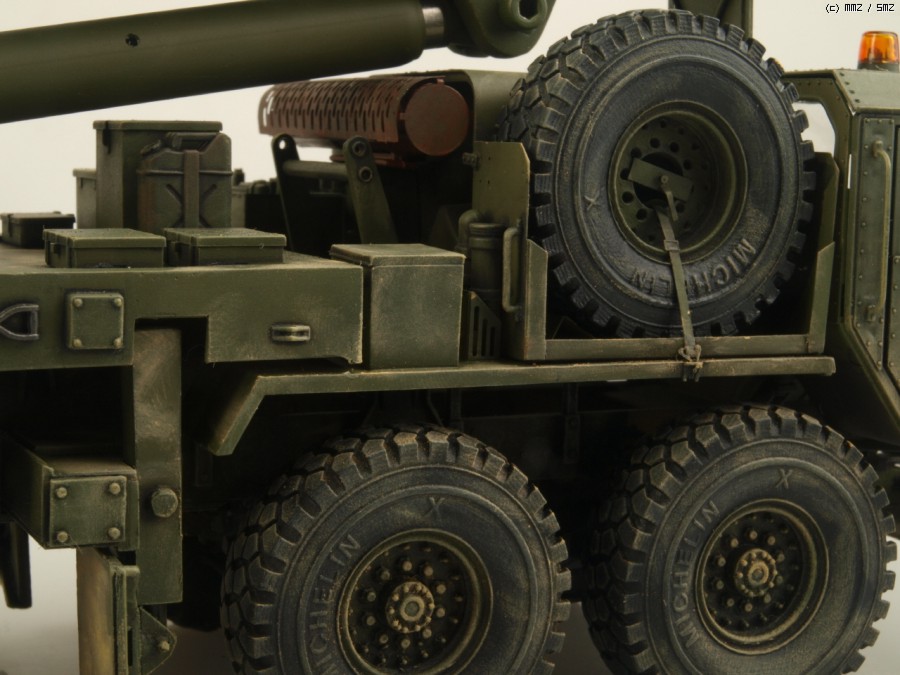 M977 오시코시 트럭의 차대를 이용하였으며 기존 차대를 제외한 크레인 부분과 하부 고정발 및 범퍼류 등을 자작했습니다.