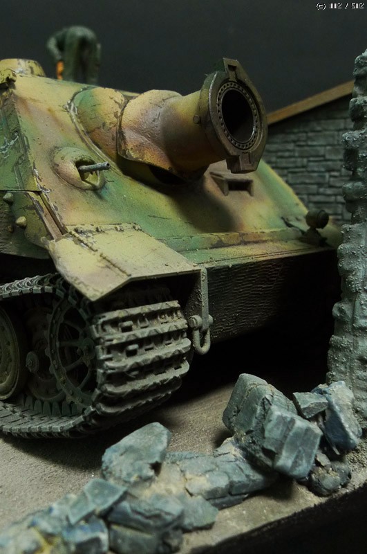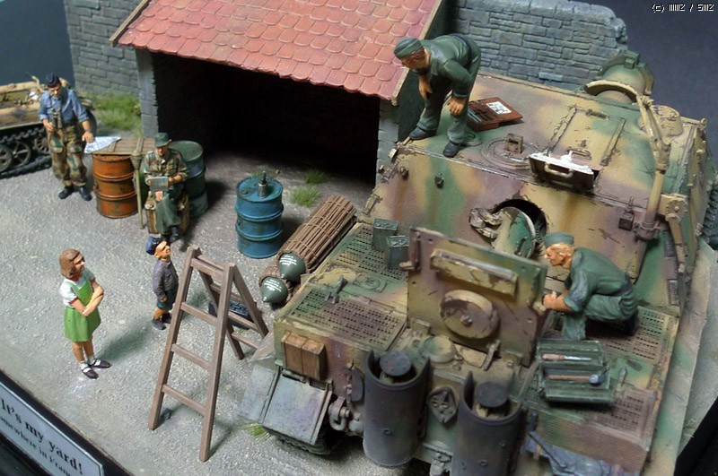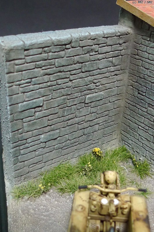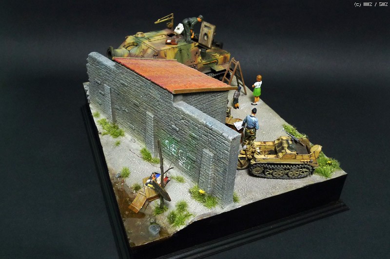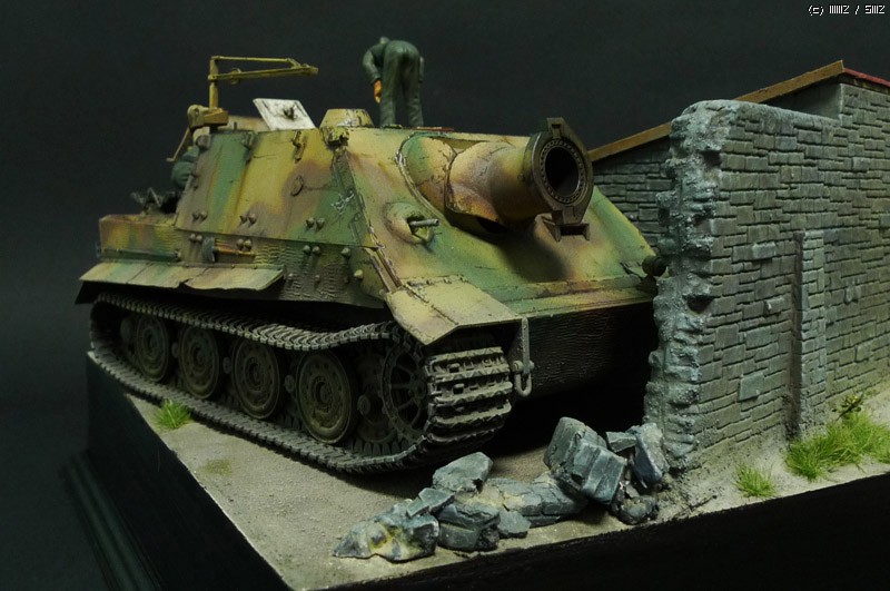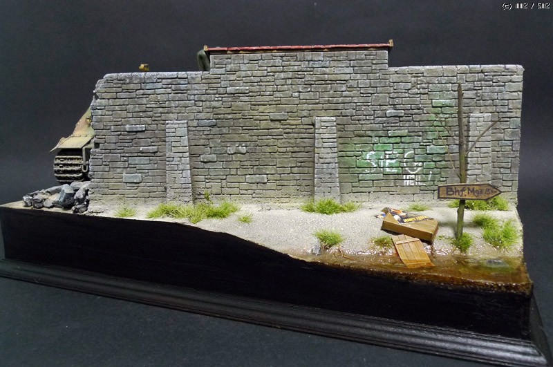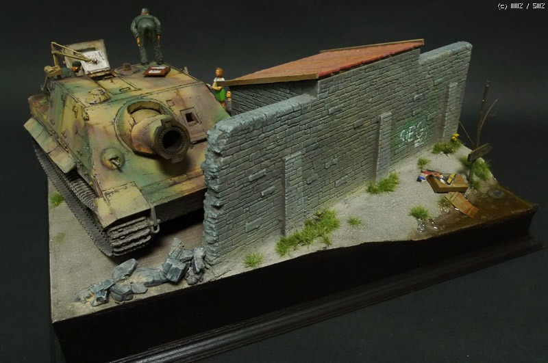 슈툼티이거는 타미야 제품이며, 무너진 담벼락은 석고에 골드폼를 퐁당 담근후 면처리를 해주며