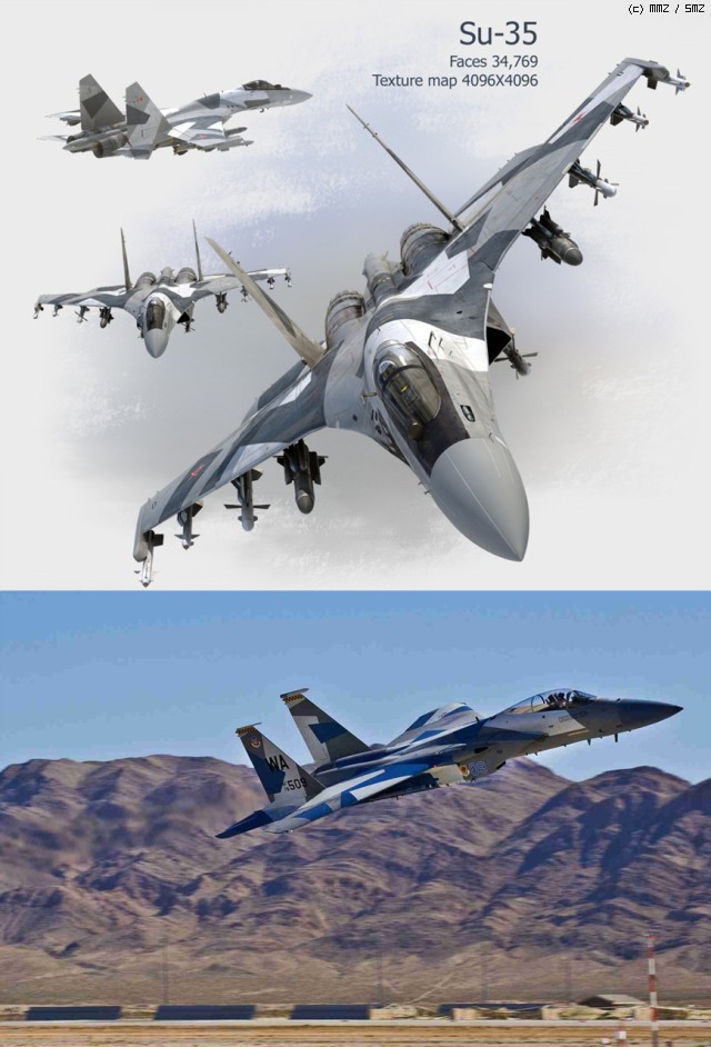 참고했던 수호이 SU-35와 미공군 F-15C Aggressor 입니다