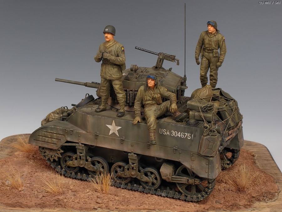 타미야제 M5A1 키트번호 35097, 미니아트제 US Tank Crew NW Europe 키트번호 35070입니다.
