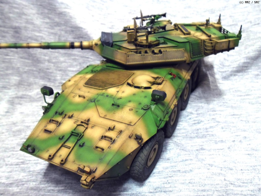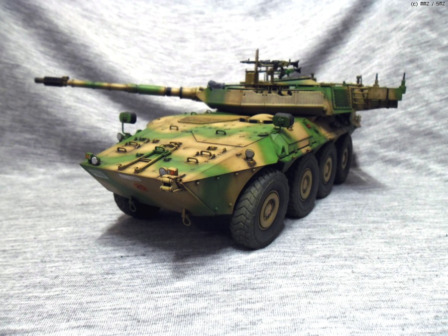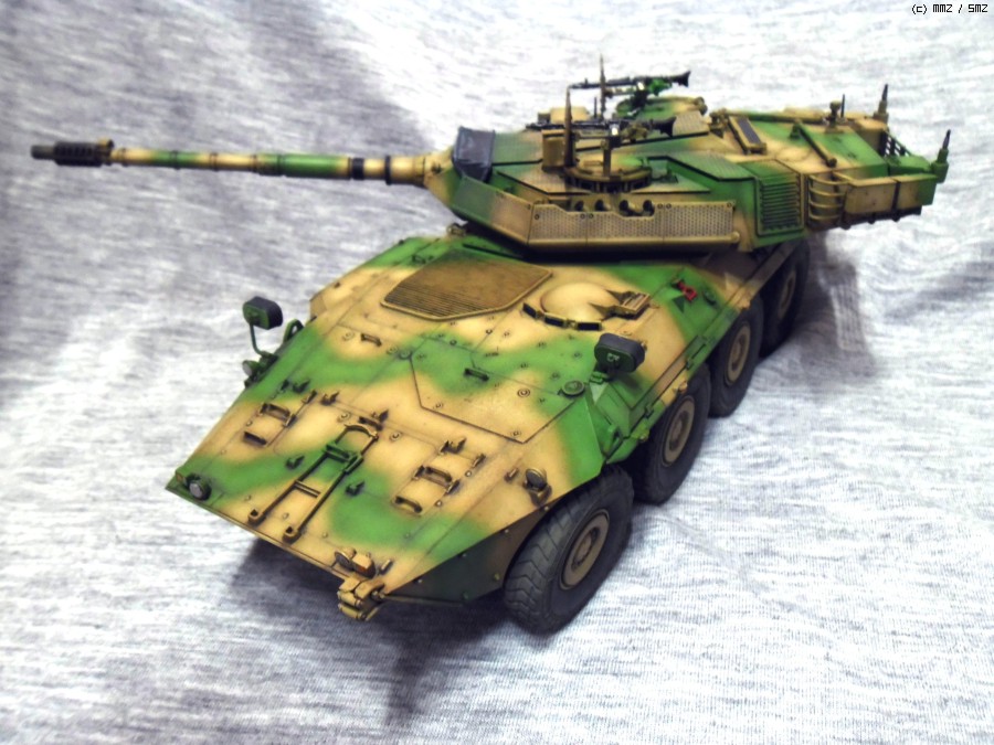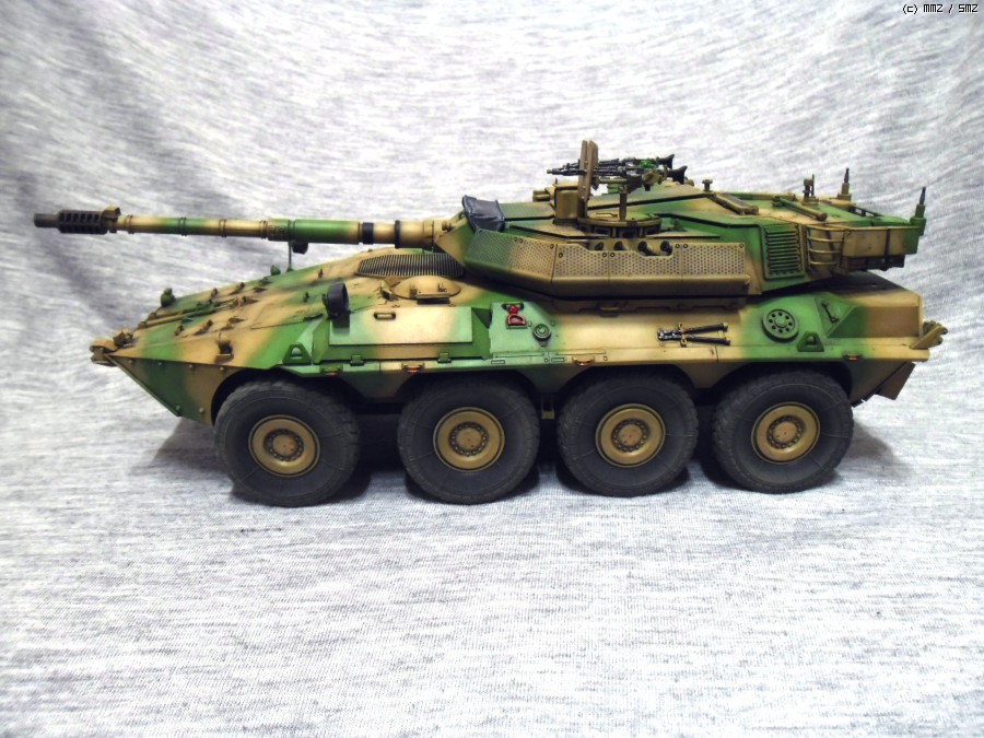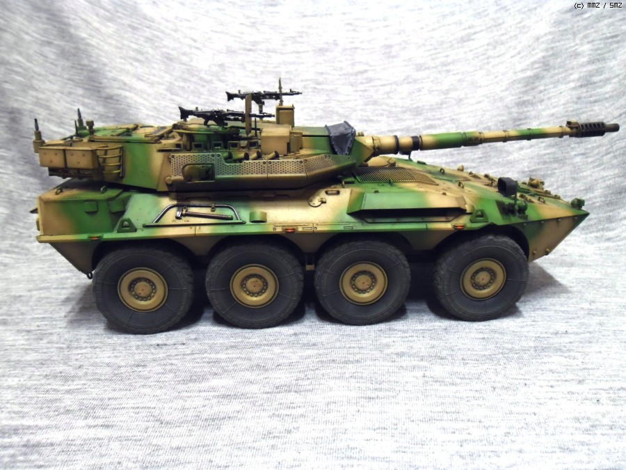실차는 105mm 주포와 최고시속 110Km의 성능을 가지고 있으며 후방도어를 이용해 보병을 탑승시킬수 있습니다.