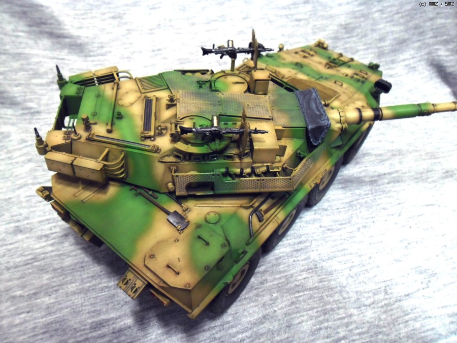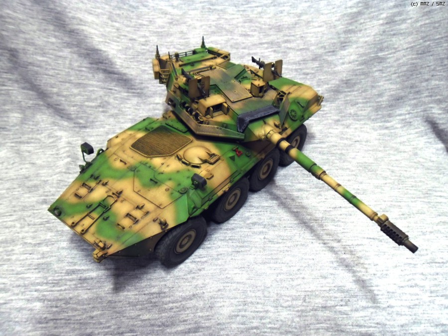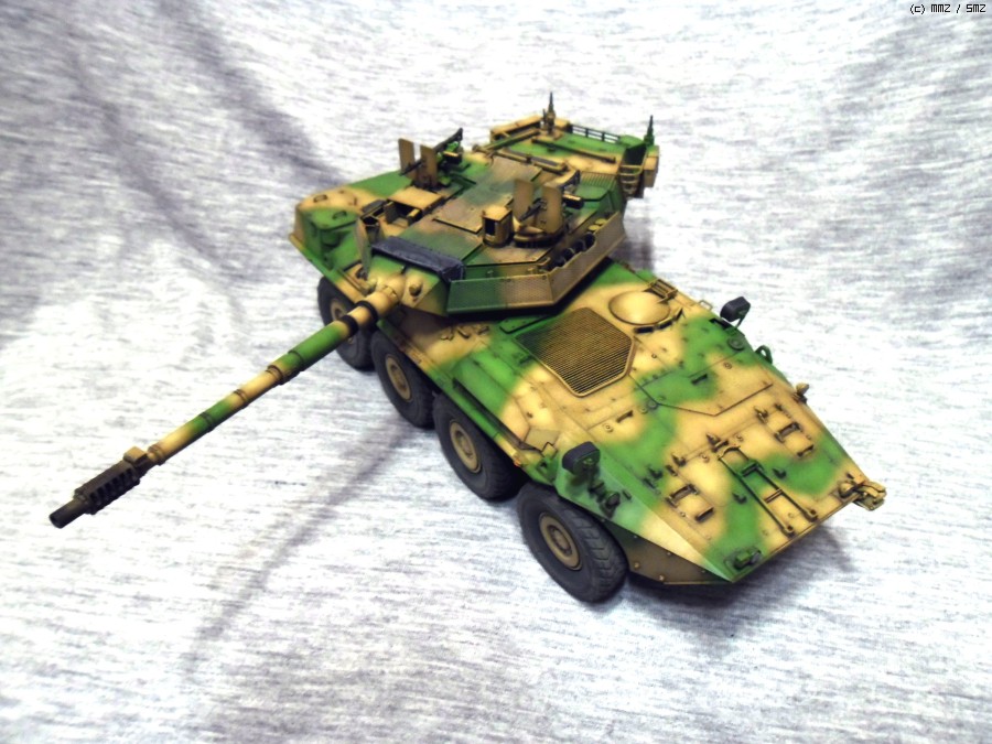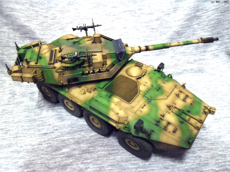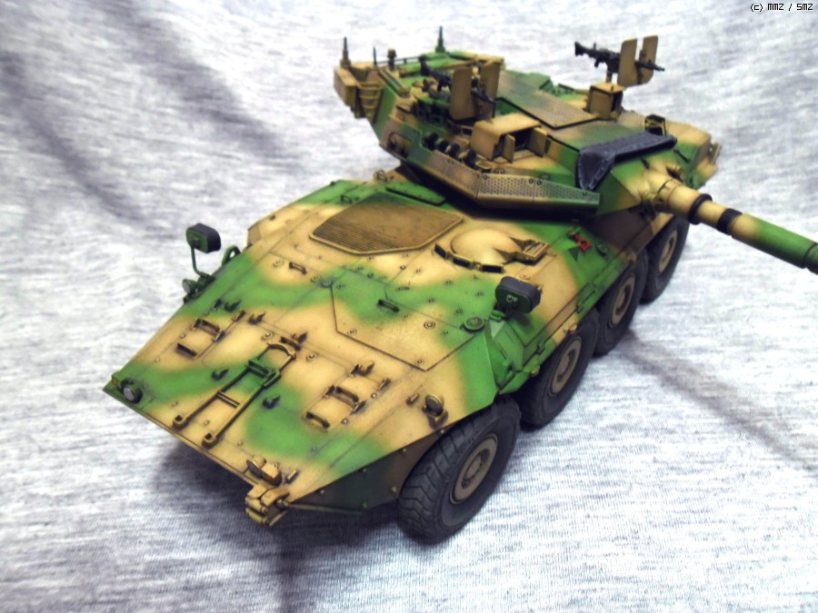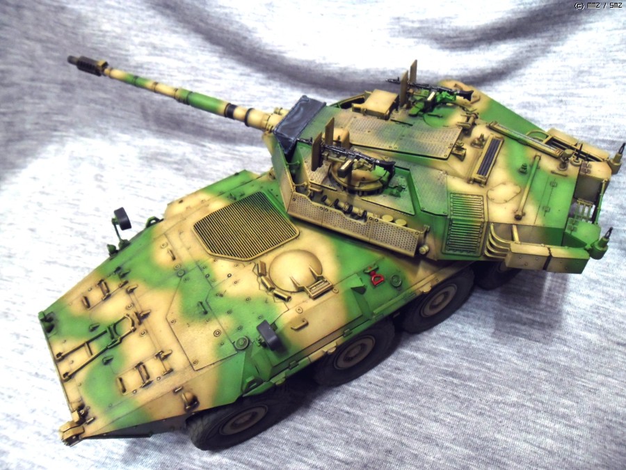 실차는 105mm 주포와 최고시속 110Km의 성능을 가지고 있으며 후방도어를 이용해 보병을 탑승시킬수 있습니다.